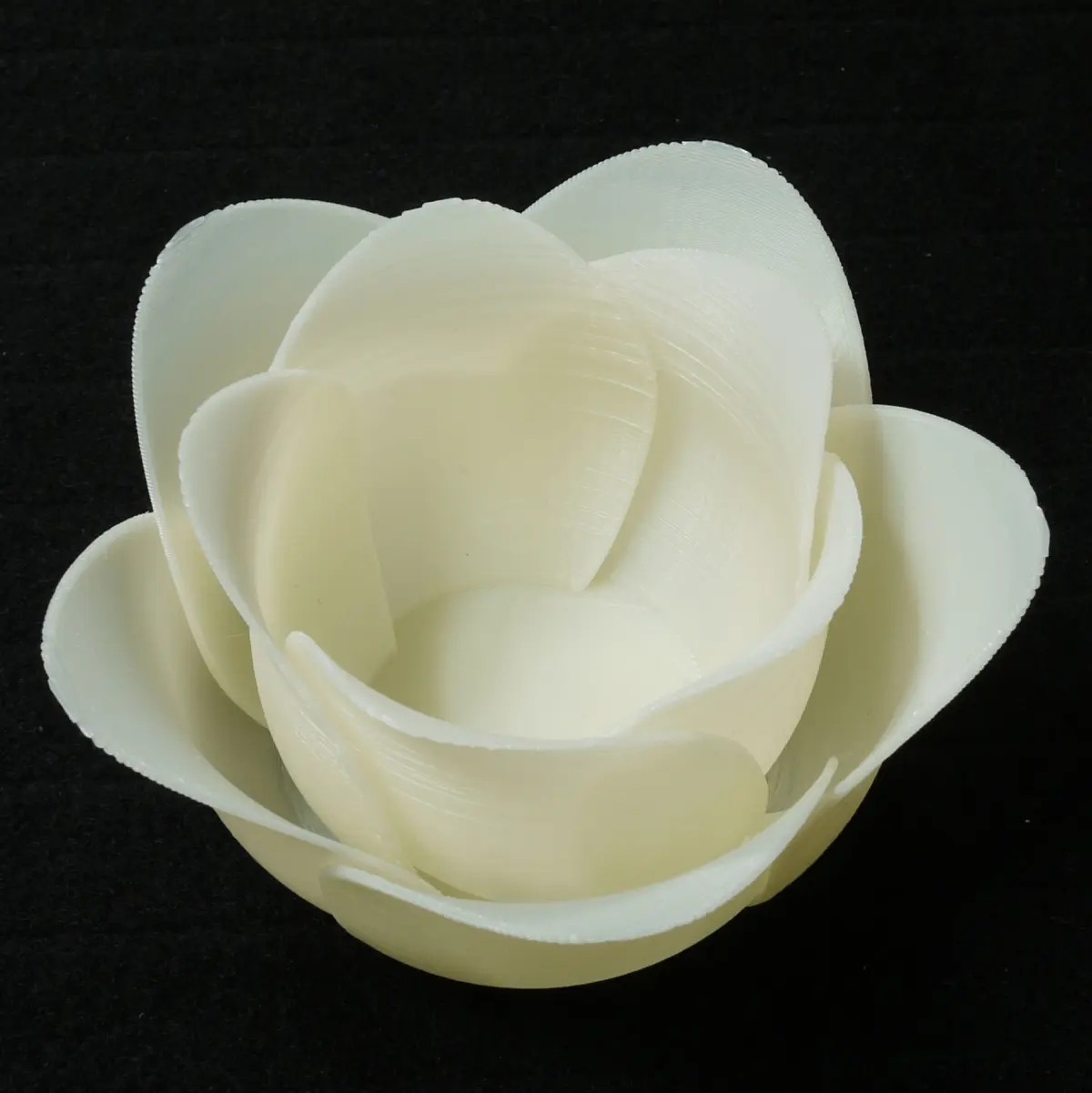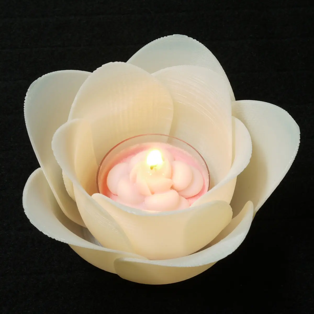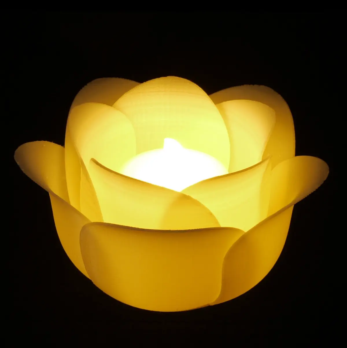 Flower-shaped candle holder. Print with bright colors, and put candles or LED candles in it. You can scale down to 0.8x, but upscaling is not recommended. Be careful when you use a real candle.