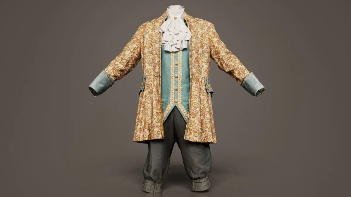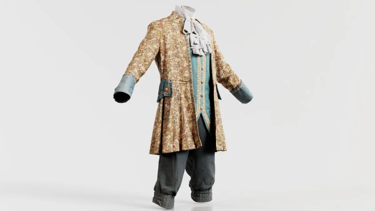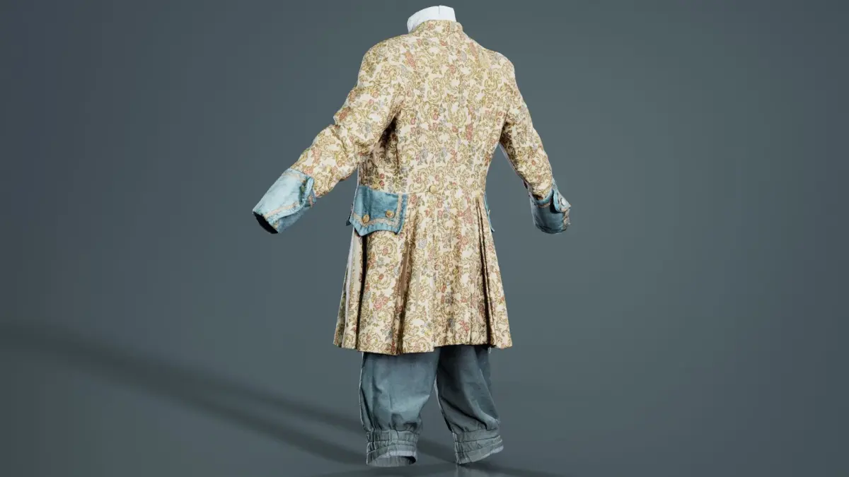 Polygonal Miniatures presents flower decorated historic costume, a model from our 3D scanned catalogue. The model, a man's costume on a mannequin, is obtained by photogrammetry, and scanned using SLR camera's.Processing takes place in Zbrush and Photoshop and the resulting 3D model has unwrapped, non overlapping UV's, and a texture and normal map. Before publishing, we make sure the model has real world scale (meters), correct shader setup and is centered at the origin.Apart from the various file formats, we also offer a Blender file with material and textures set-up, ready for export and rendering. More info can be found below: