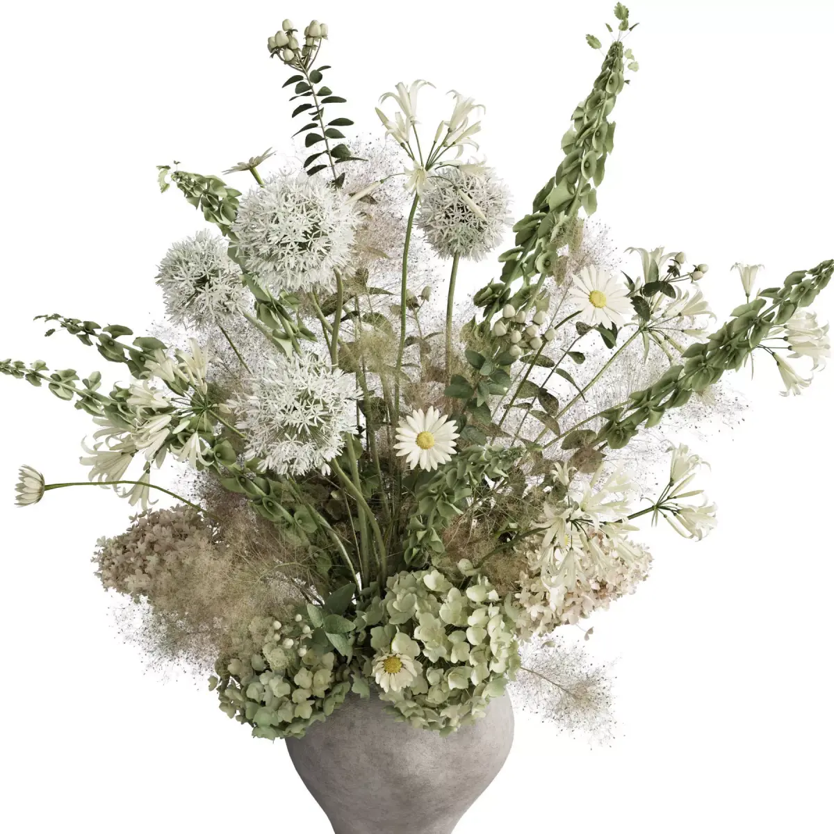 bouquet, plant, flower, flowers, indoor, decor, decorative, organic, vase, interior, decoration, flora, allium, bells of ireland, bells, ireland, daisy, hydranegea, nerine, smokebush,