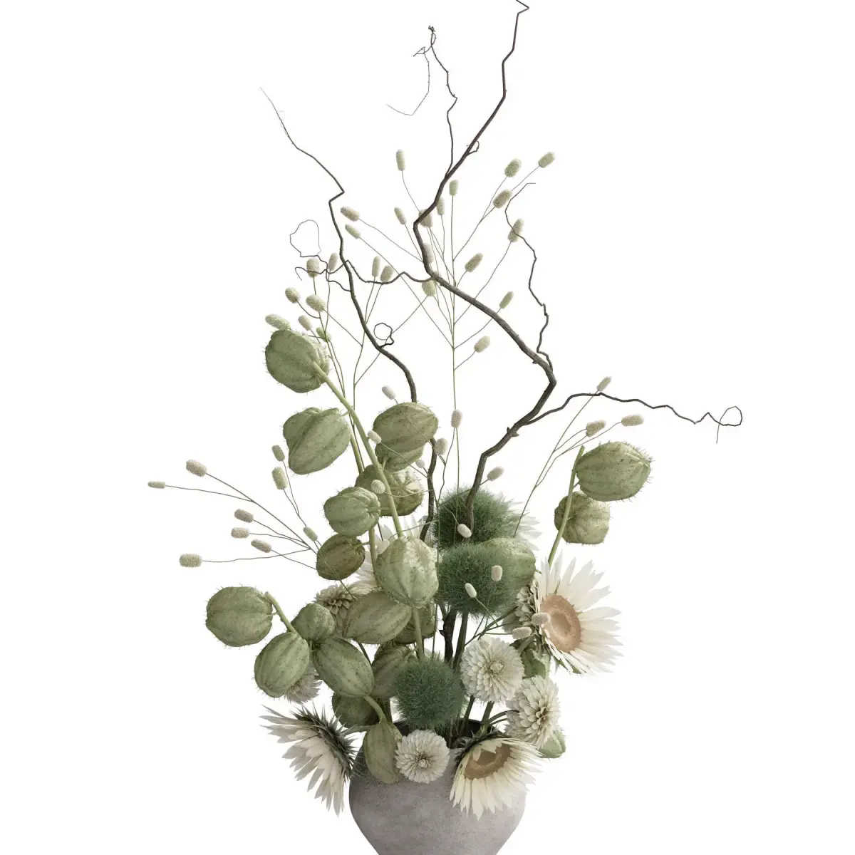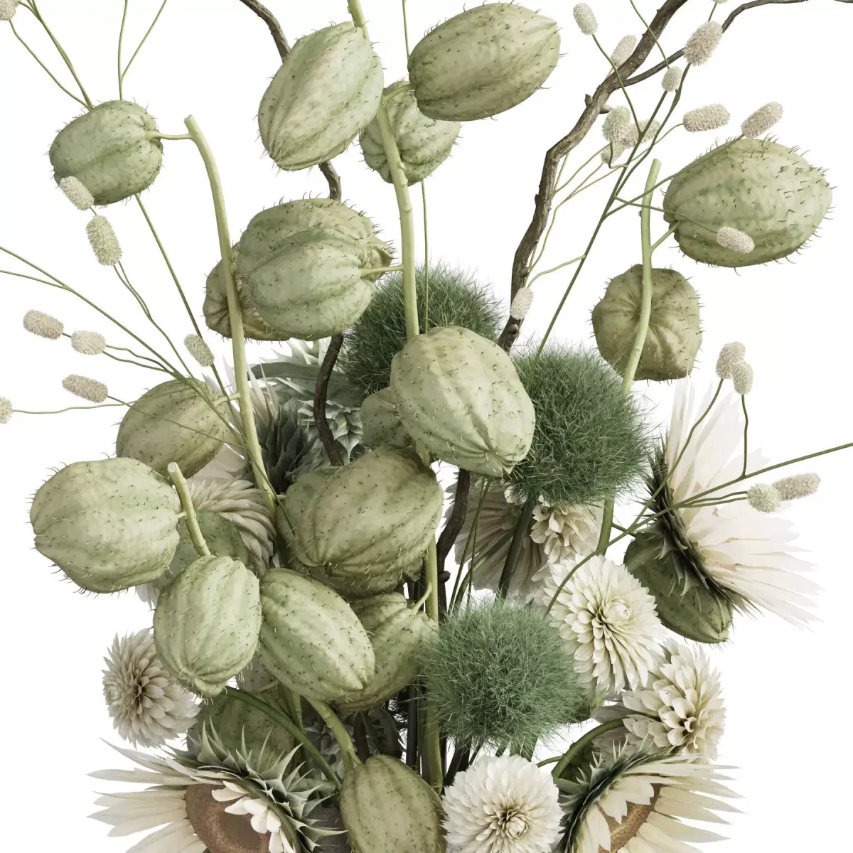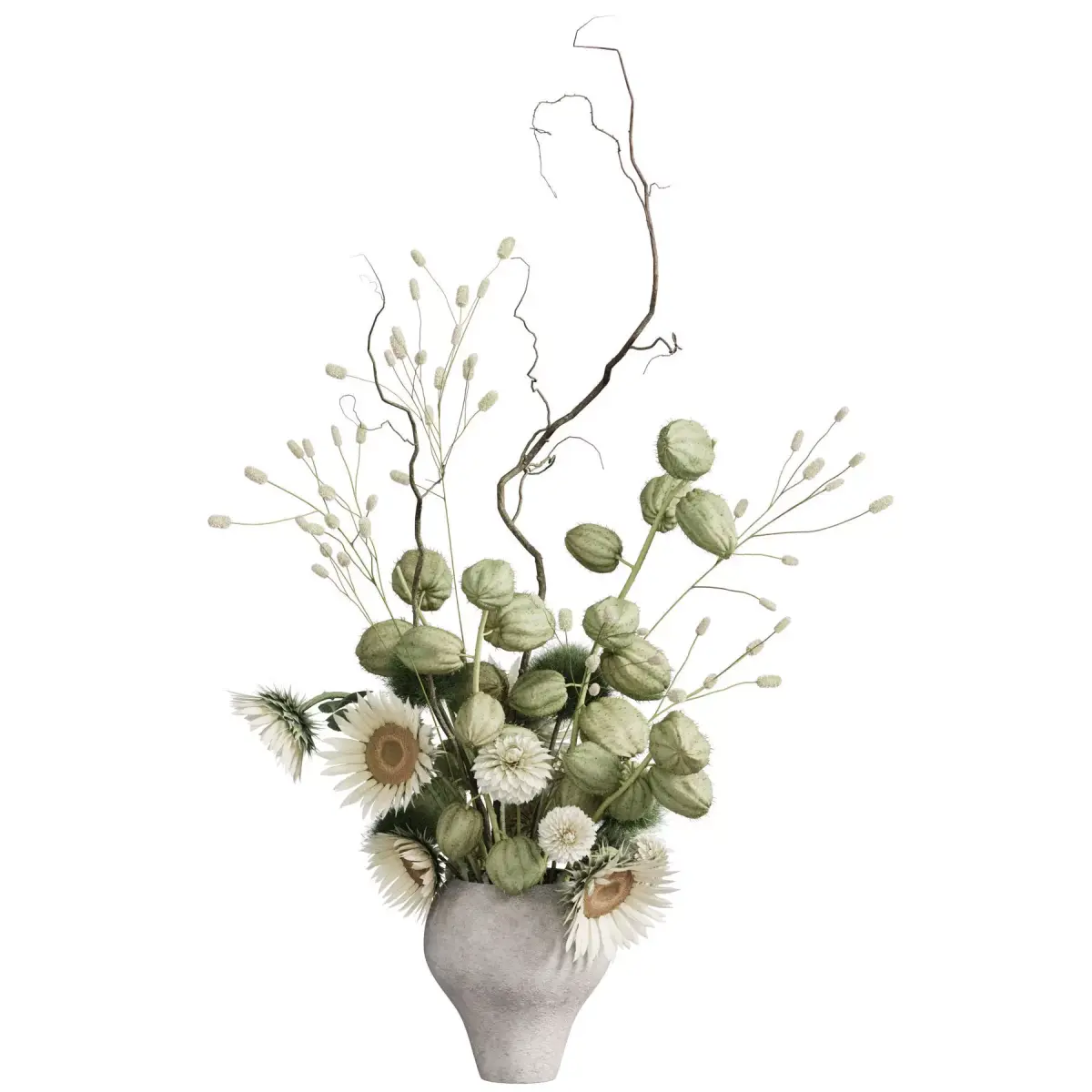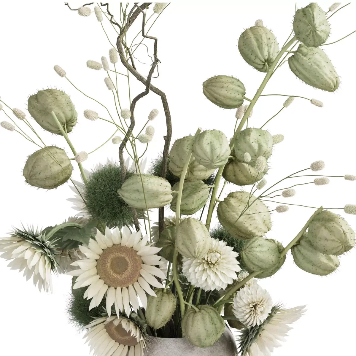 bouquet, plant, flower, flowers, indoor, decor, decorative, organic, vase, interior, decoration, flora, dahlia, gomphocarpus, greenball, sanguisorba, sunflower, willow,
