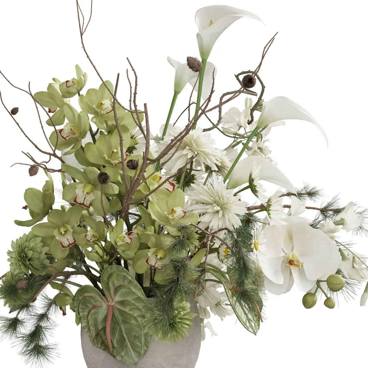 bouquet, plant, flower, flowers, indoor, decor, decorative, organic, vase, anthurium, calla lily, dahlia, daisy, needle, orchid, cymbidium, sweet pea, flora, decoration, interior,