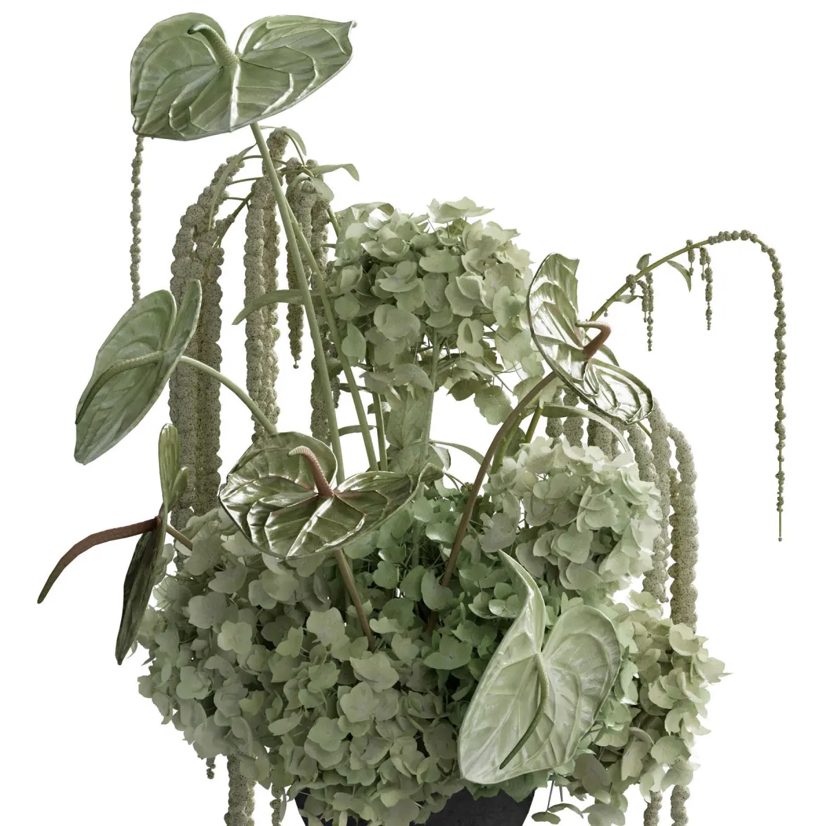 bouquet, plant, flower, flowers, indoor, decor, decorative, organic, vase, anthurium, hydrangea, amaranthus, green, ceramice, clay, stone, inrerior, decoration, flora,