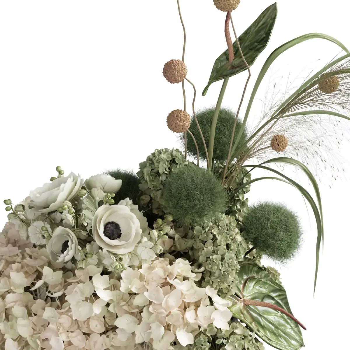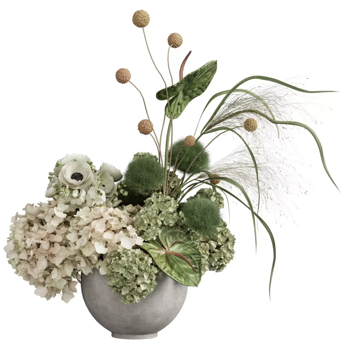 bouquet, plant, flower, flowers, indoor, decor, decorative, organic, vase, anemone, anthurium, craspedia, delphinium, green ball, hydranegea, wild grass, ceramice, clay, stone, interior, decoration, flora,