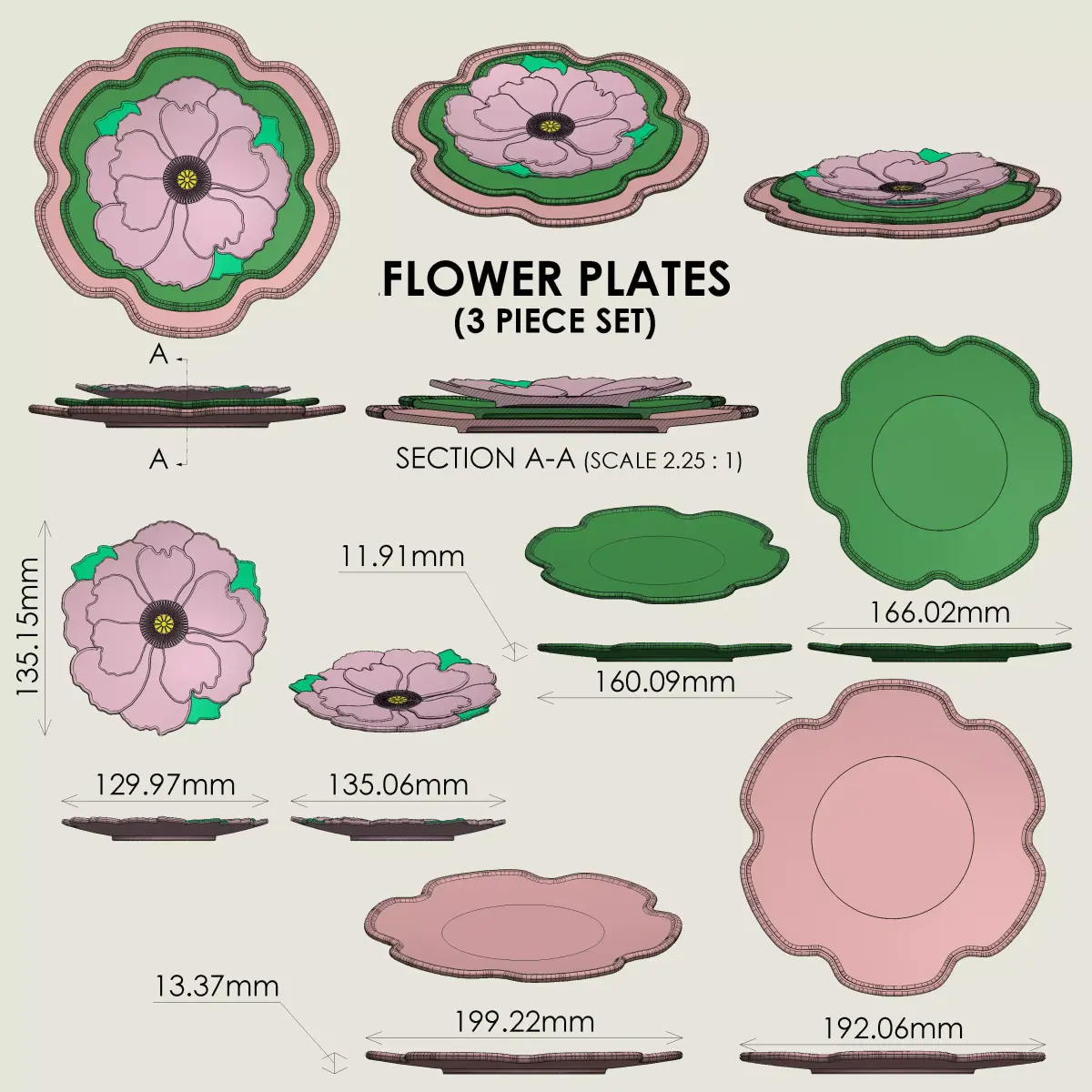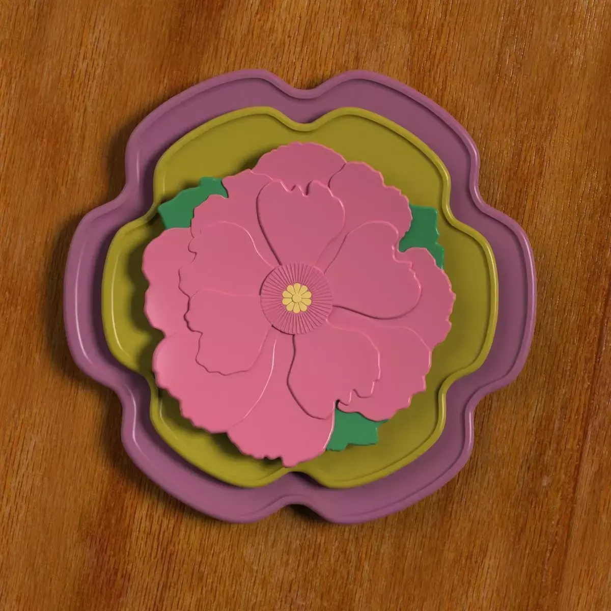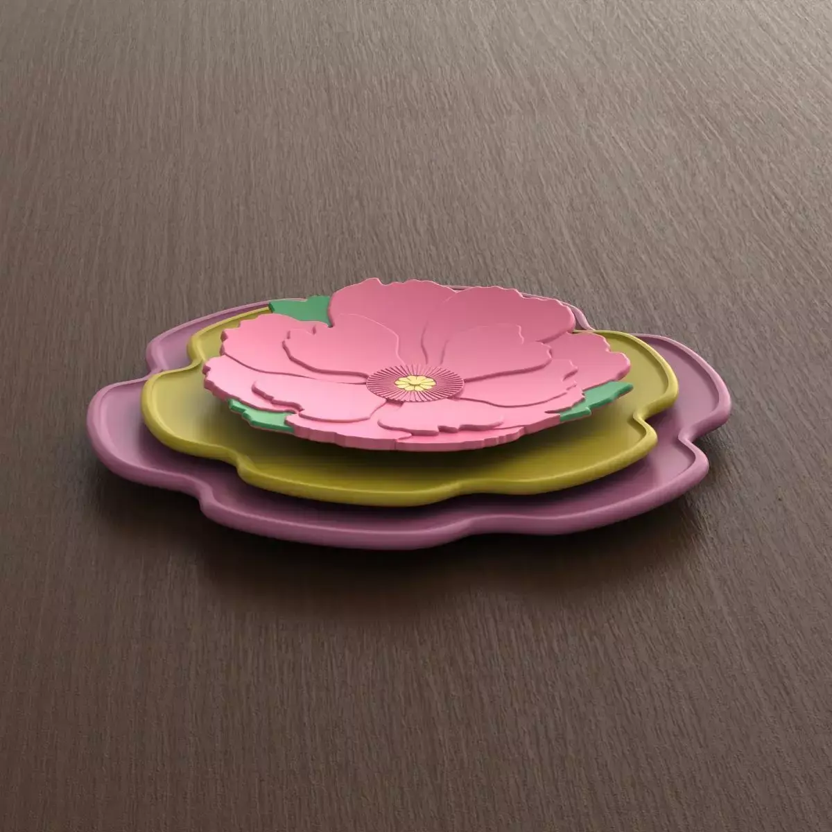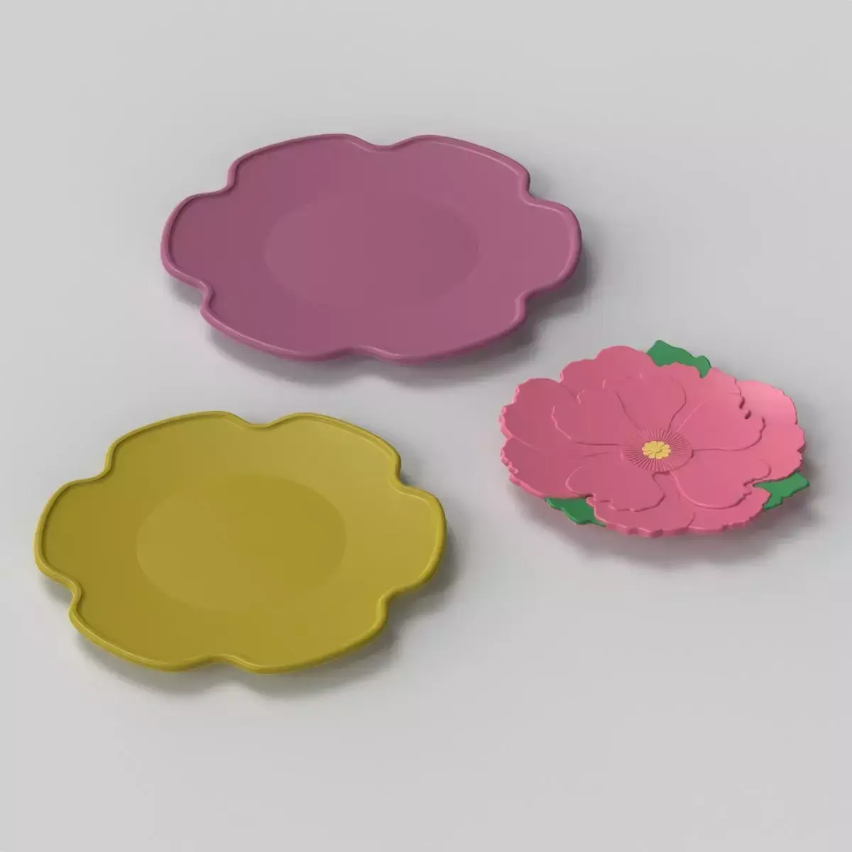 3D printable Flower Plate set consisting of three plates with separate print files for each plate.