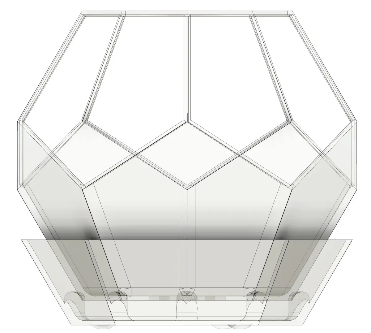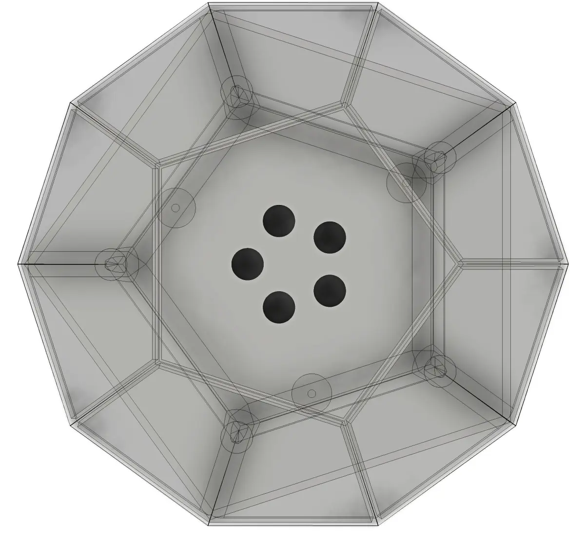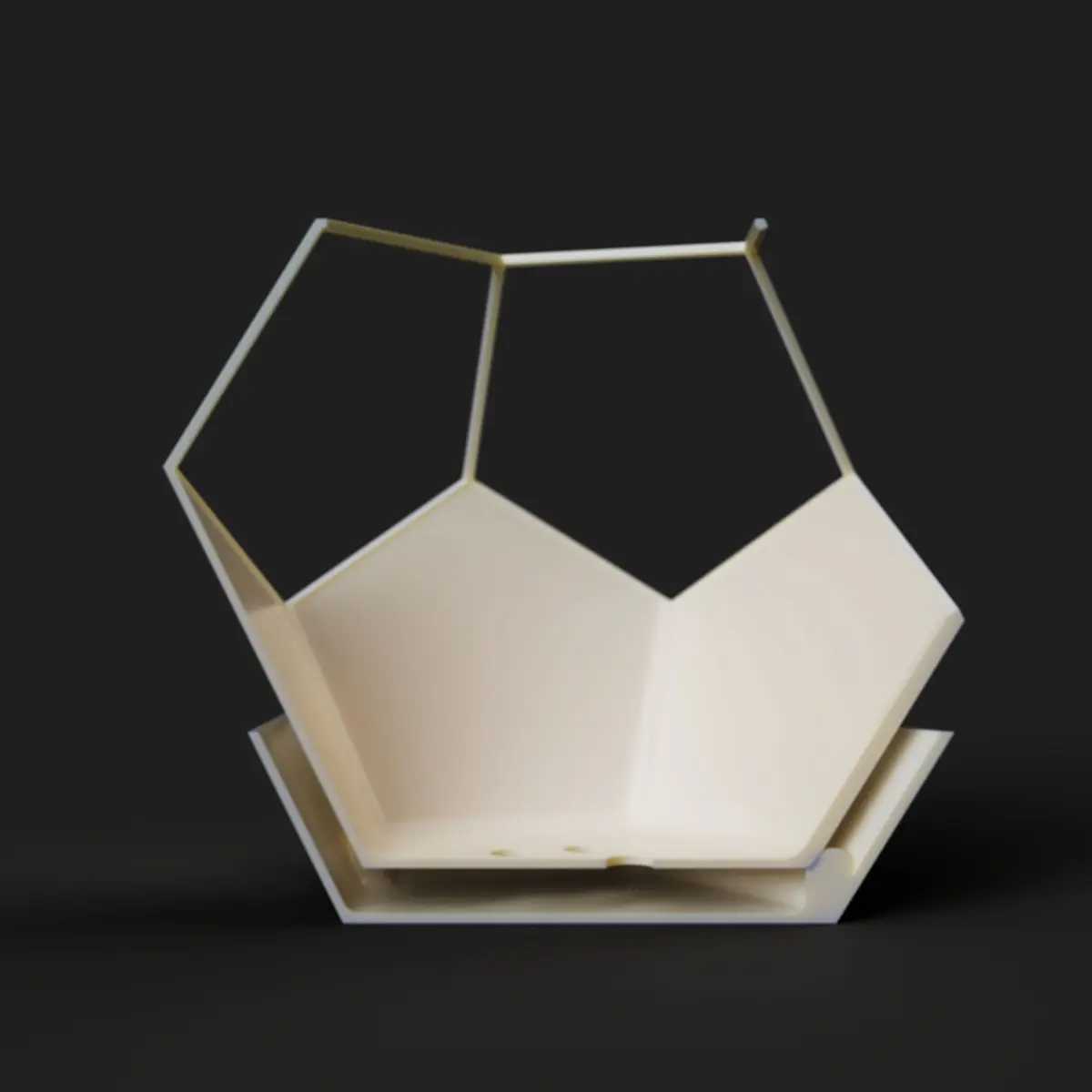 Perfected dodecathleon flower pot with underplate, pentagone. Lifted above the underplate. Holes for water drainage. Underplate with tripod stand to prevent wobbeling. Inner edges rounded for better washing and increased strength. All 3D printable even when scaled up.