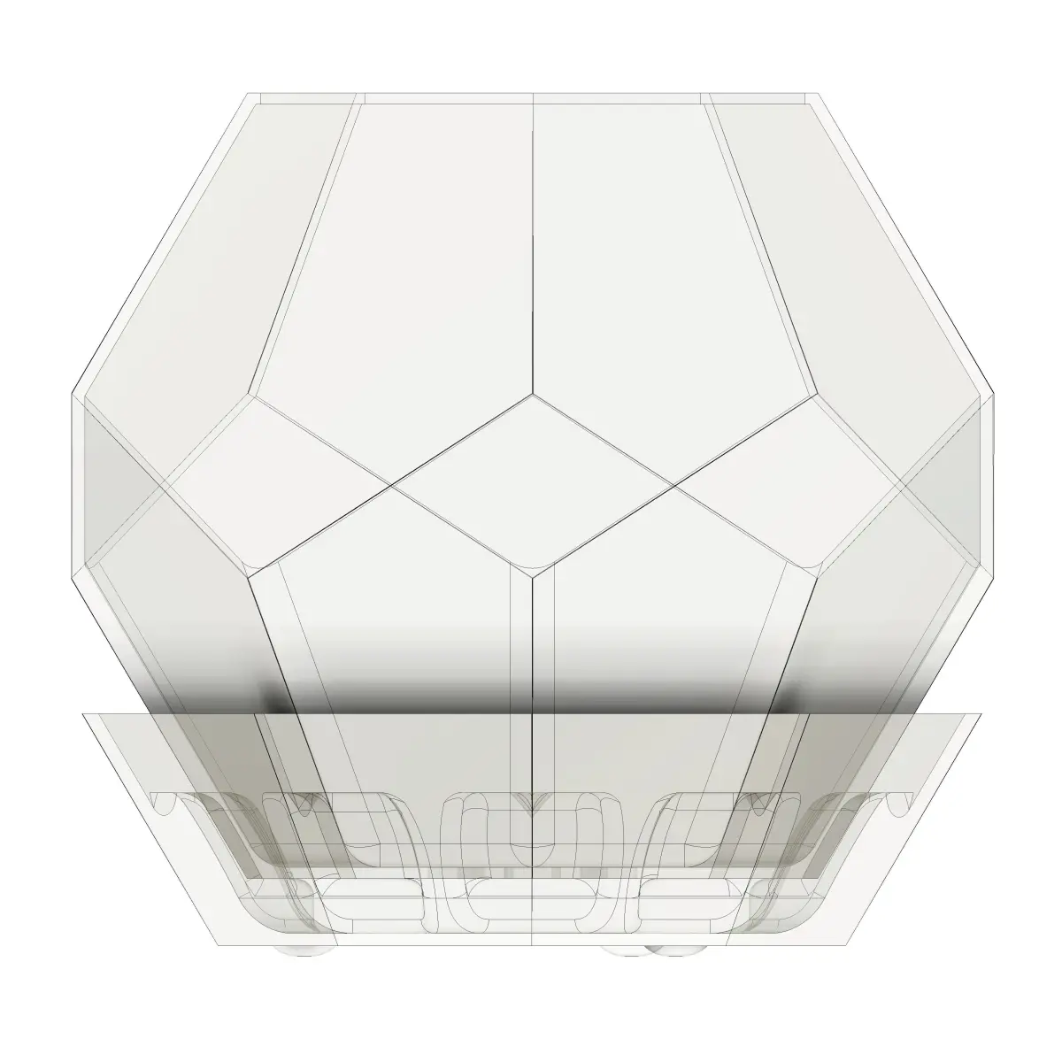 Perfected dodecathleon flower pot with underplate, pentagone. Lifted above the underplate. Holes for water drainage. Underplate with tripod stand to prevent wobbeling. Inner edges rounded for better washing and increased strength. All 3D printable even when scaled up.