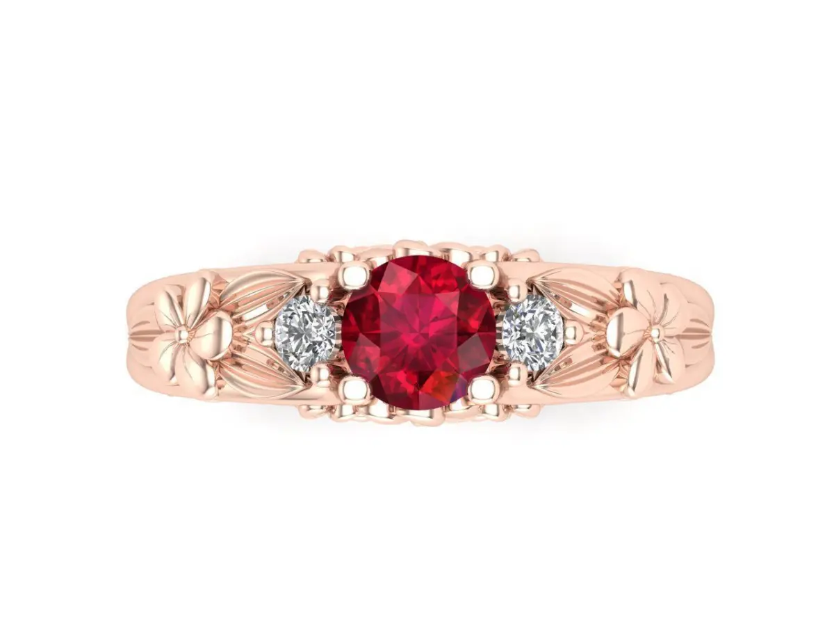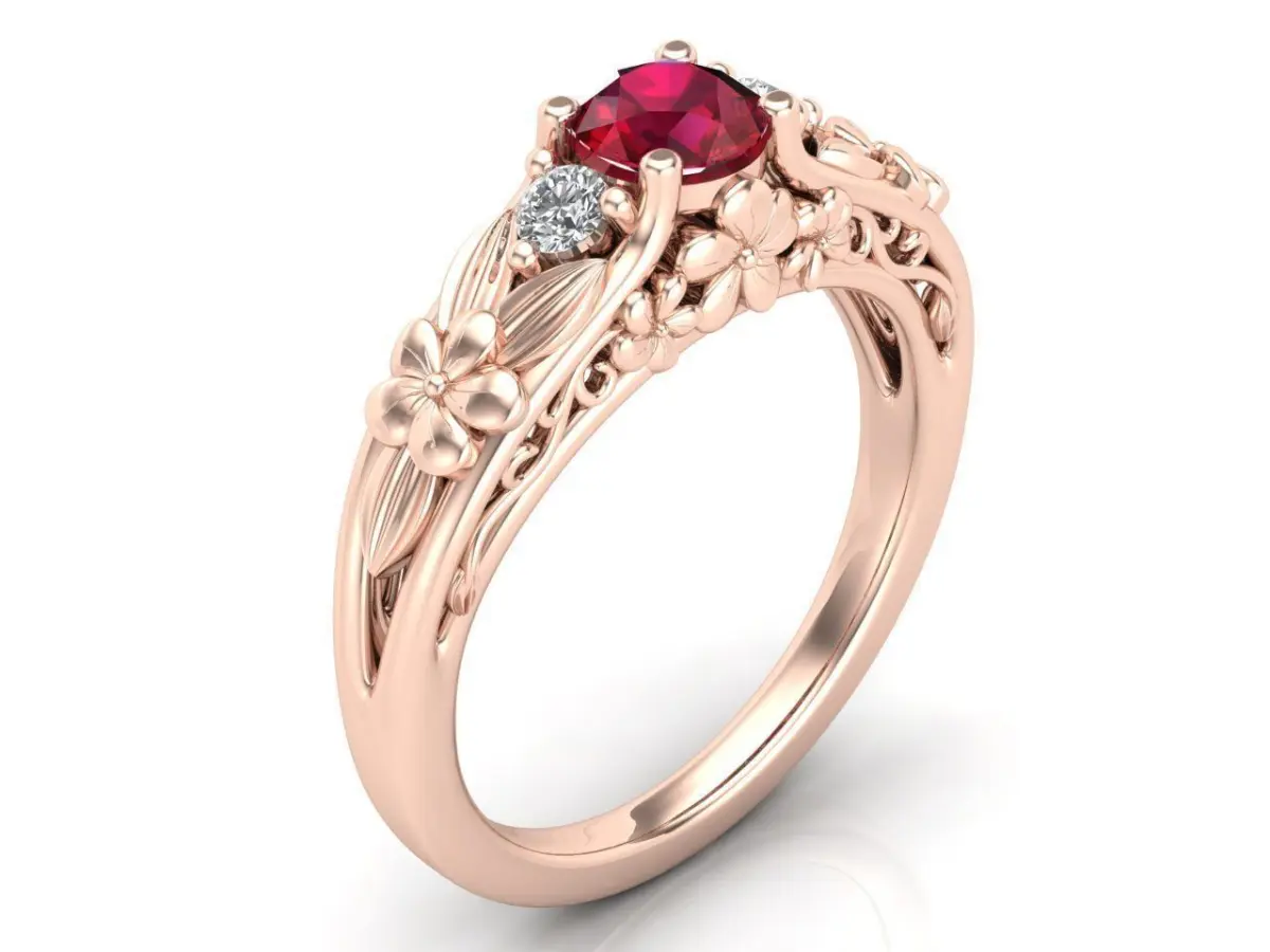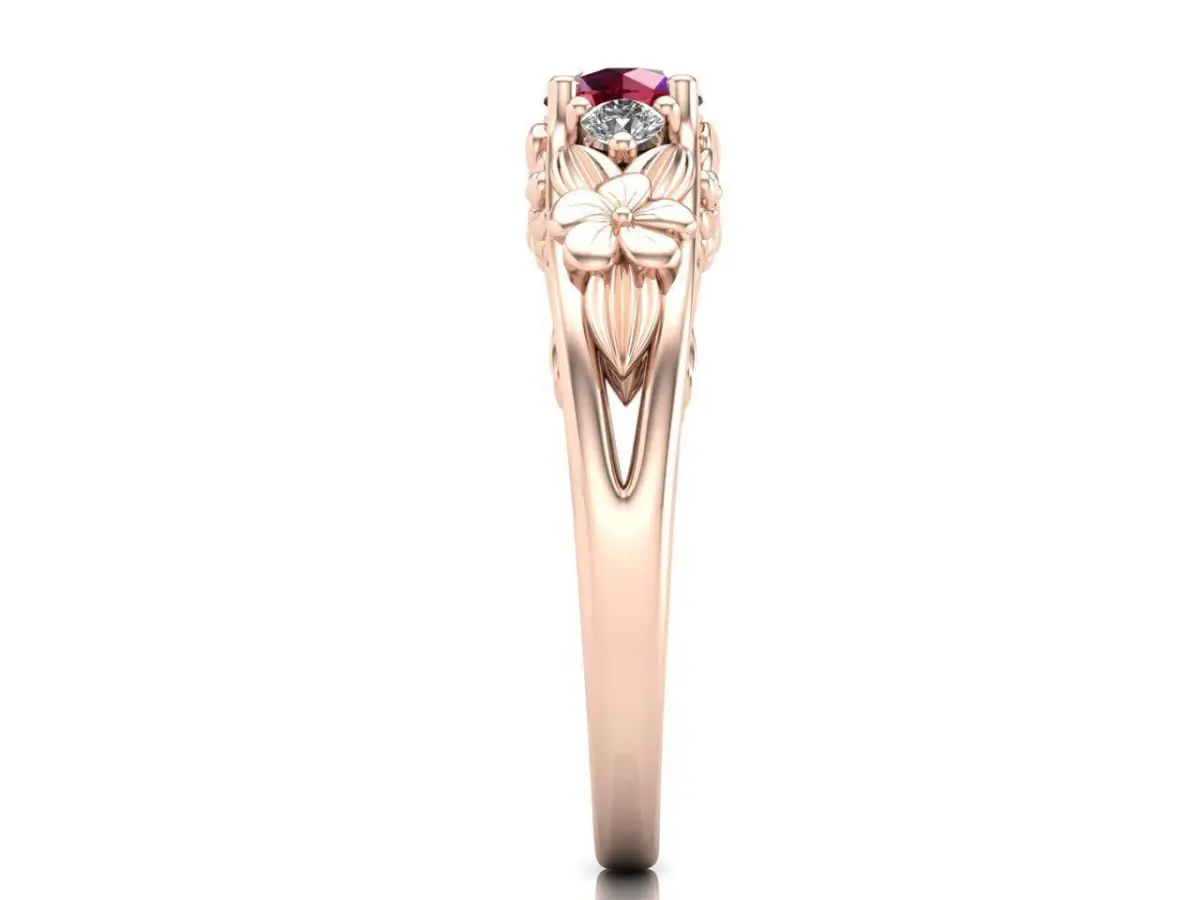 Flower ring with beautiful, unique design.Weight:Yellow gold 14K - 5grWhite gold 14K - 4.89grRose gold 14K - 5.06grPlatinum - 7.80grSilve 925 - 4.02grGems:Round 5mm(1pc)Round 2.5mm(2pcs)