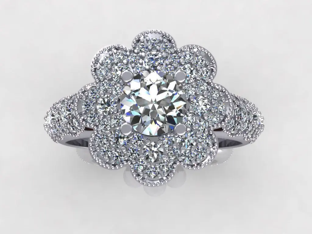 Home Catalog Flower Round Diamond Ring 3D print model