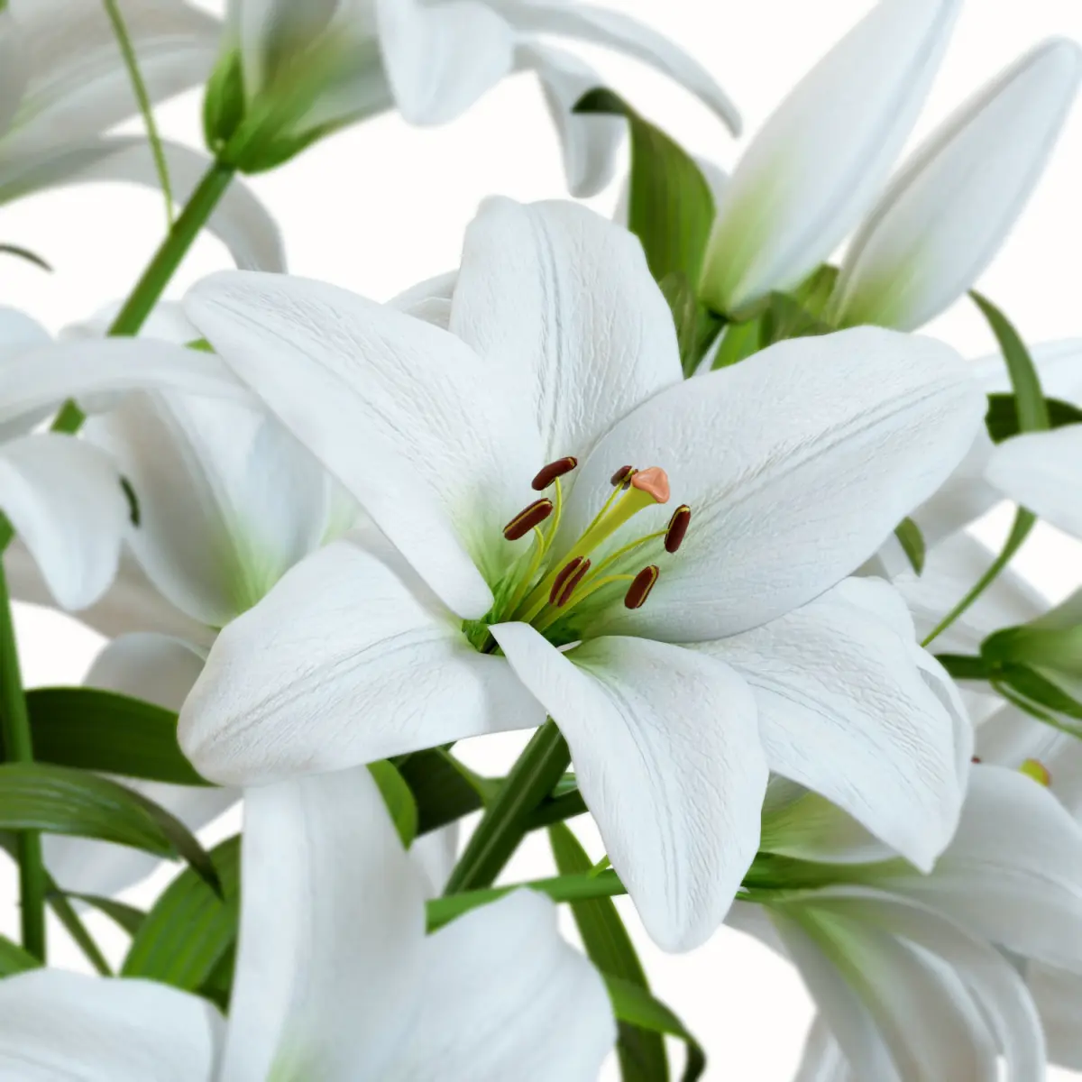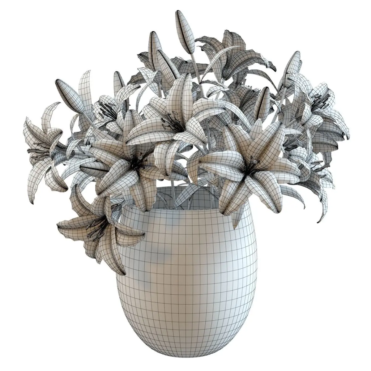 High-quality 3d model of a Lily Bouquet in a glass vase.The model is fully subdividable.