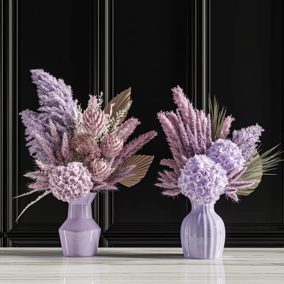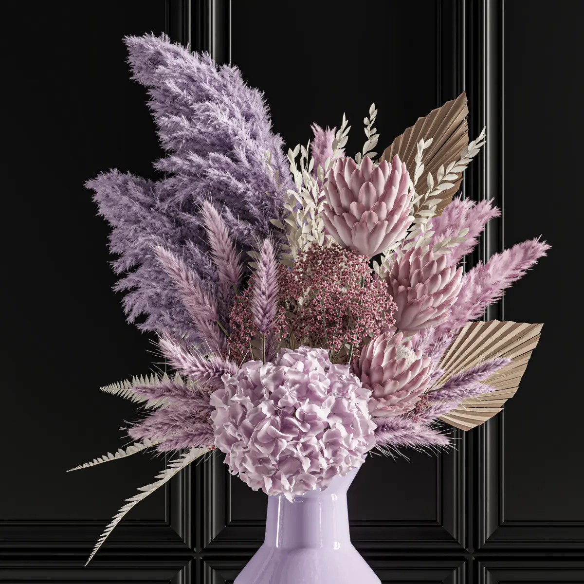 flower, vase, leaf, decor, decoration, set, breath, baby, pampas, grass, purple, pink, protea, hydrangea,