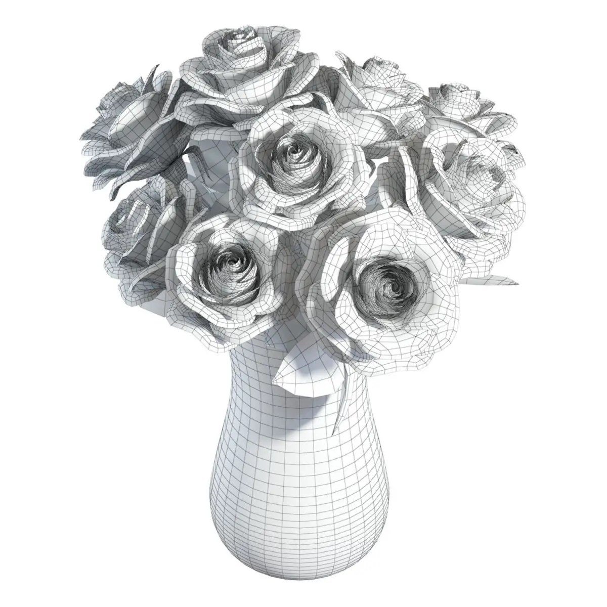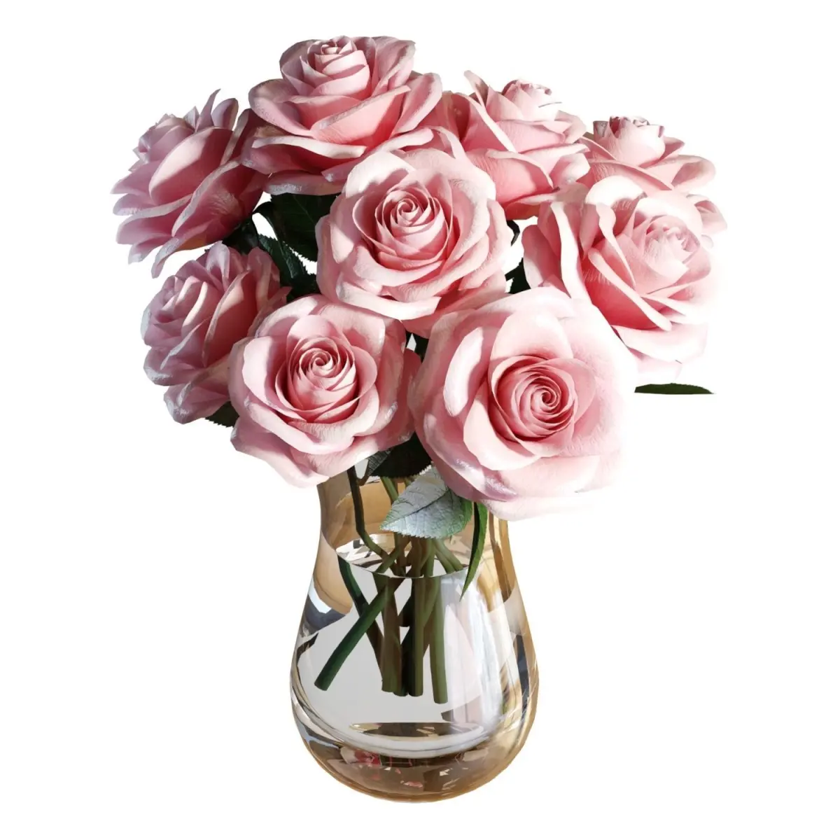 High-quality 3d model of a Pink Roses Bouquet in Crate&Barrel Pera Large glass vase.The model is fully subdividable.