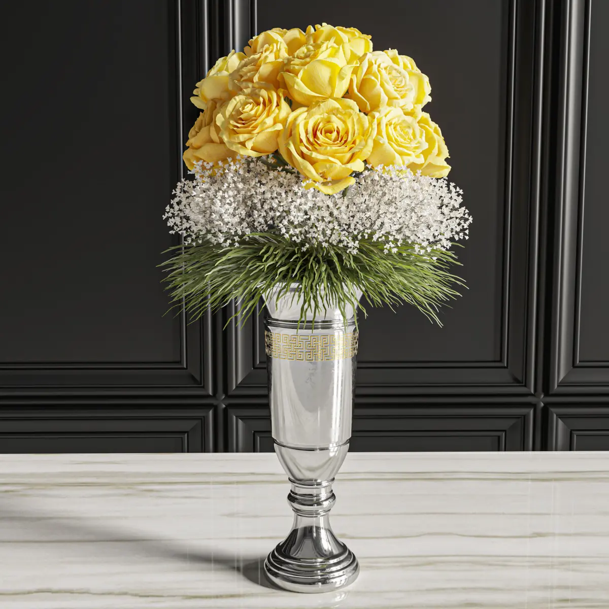 flower, vase, leaf, decor, decoration, set, breath, baby, rose, yellow, peony,