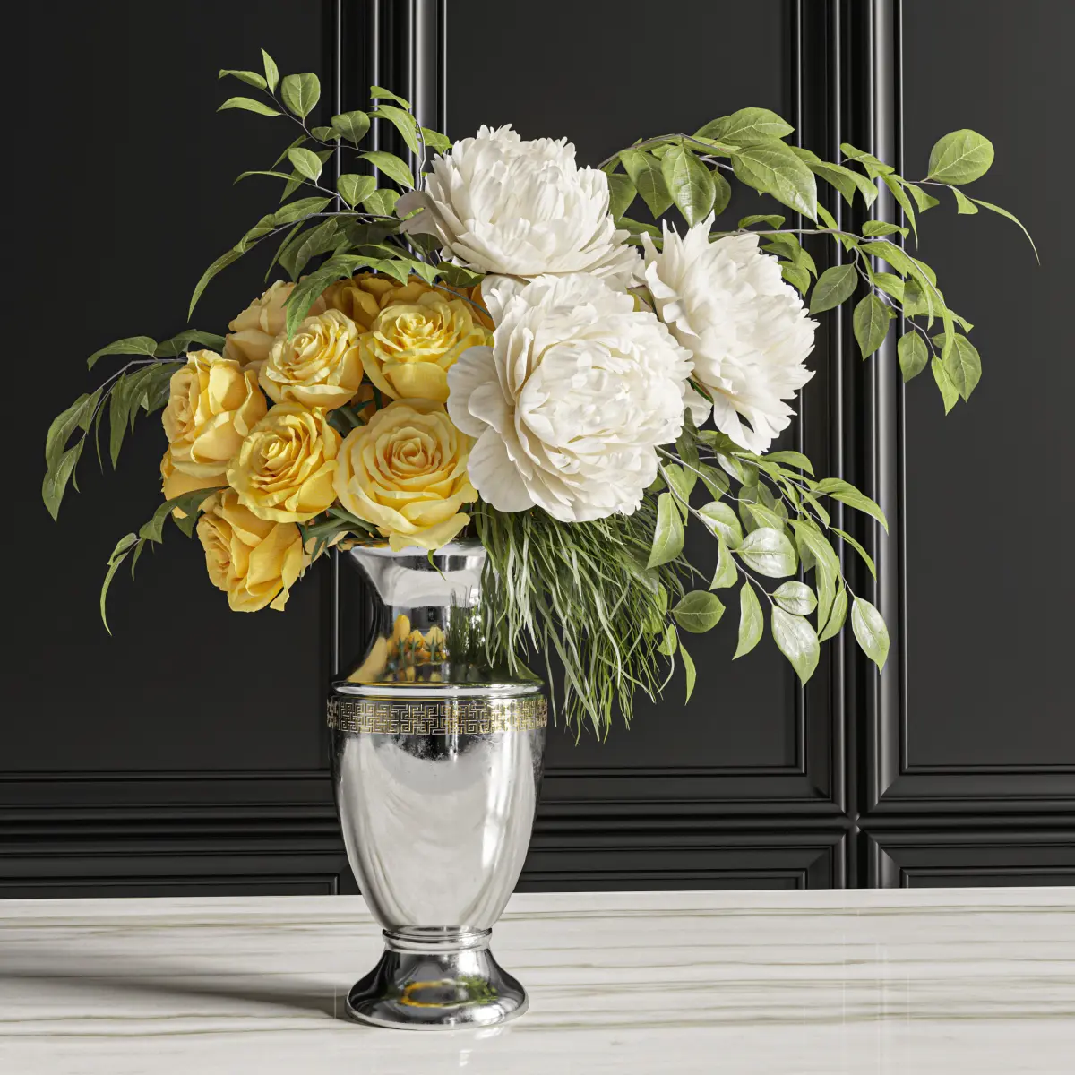 Flower Set 020 Yellow rose white peony.Polys: 1,626,989Verts: 1,136,634