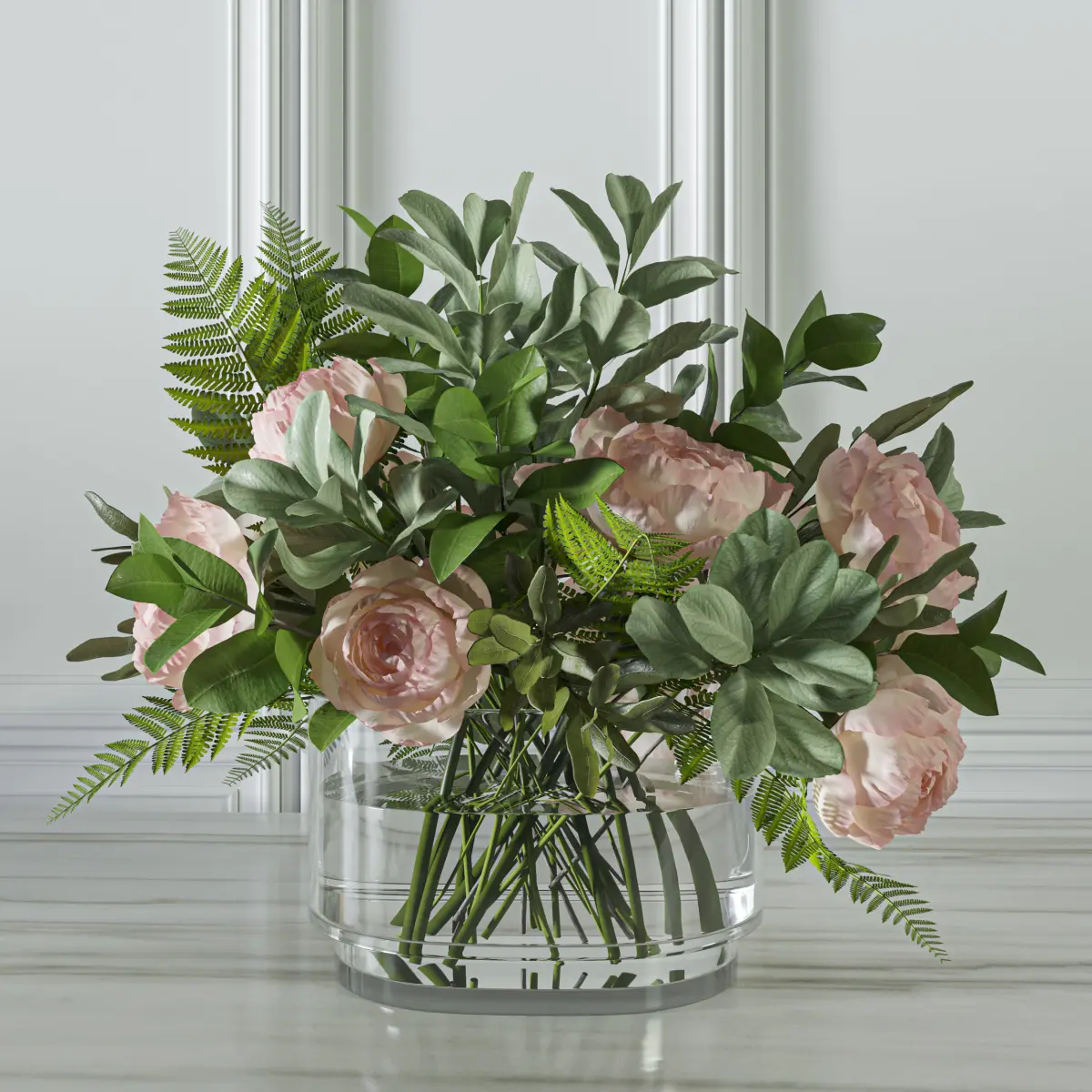 flower, vase, leaf, decor, decoration, set, bouquet, wedding, leaves, white, fern, seed, eucalyptus, rose,