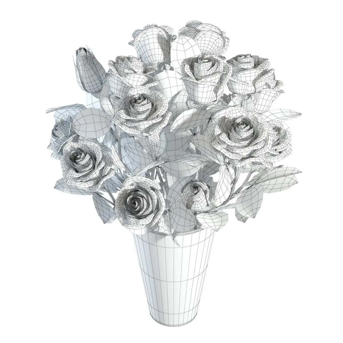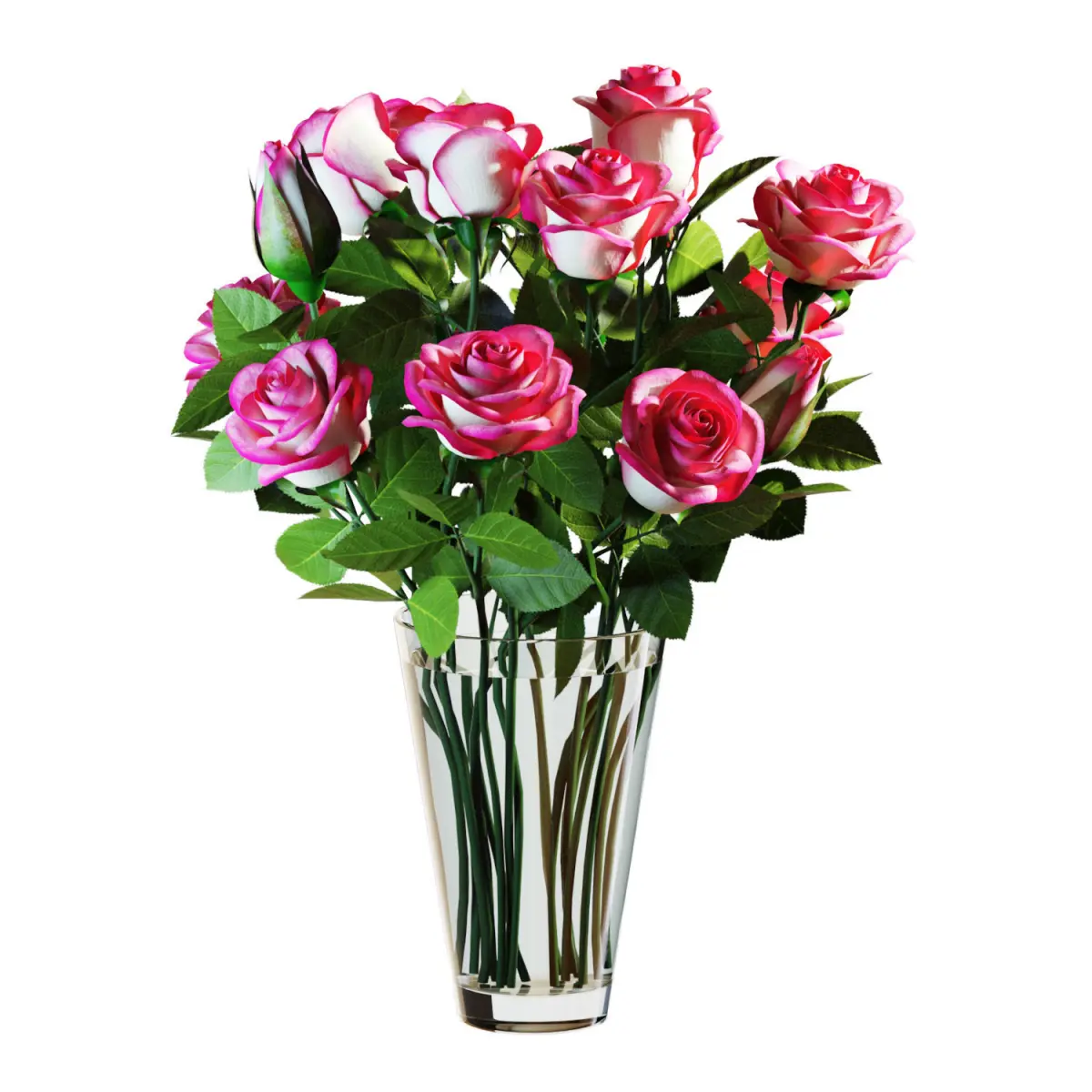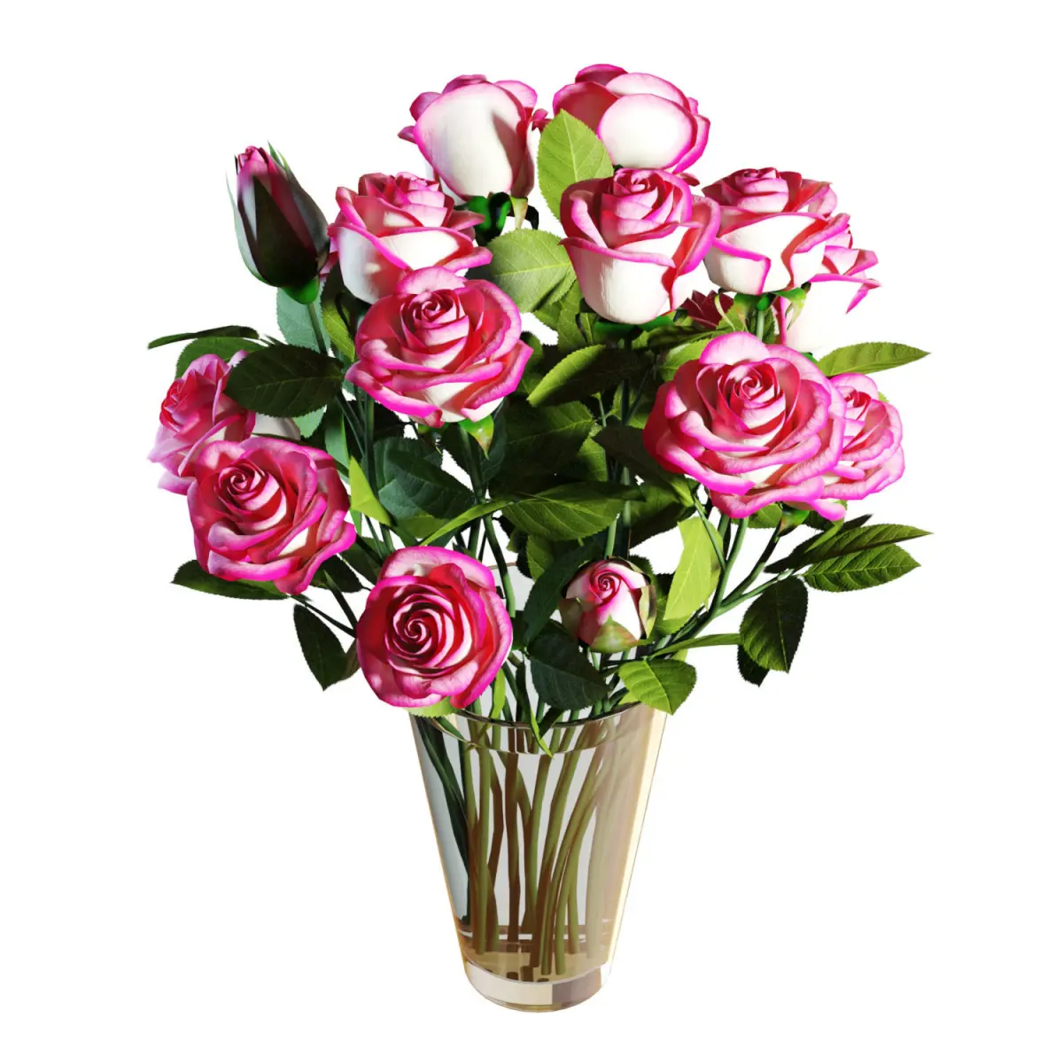 High-quality 3d model of a Pink Roses Bouquet in a glass vase.The model is fully subdividable.