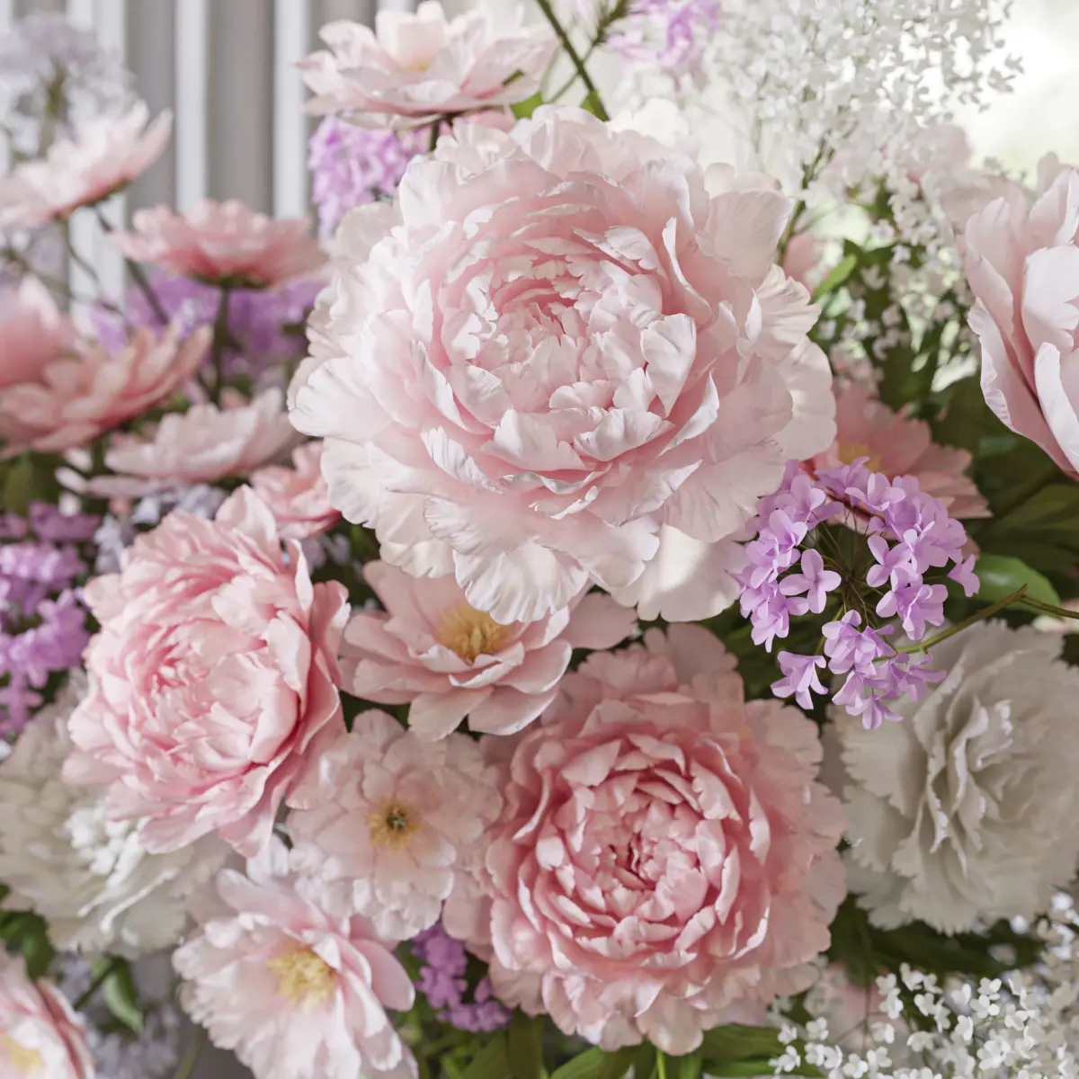 flower, vase, leaf, decor, decoration, set, bouquet, wedding, leaves, white, peony, peonies, pink, floral,