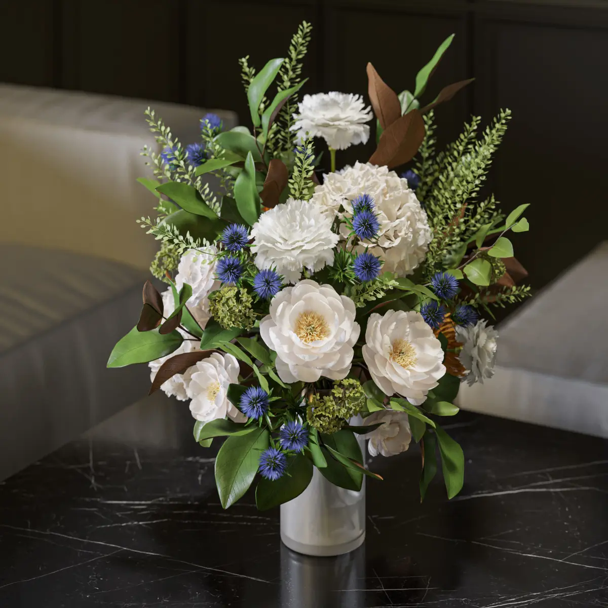 flower, vase, leaf, decor, decoration, set, bouquet, wedding, leaves, white, peony, peonies, floral, carnation, magnolia, green,