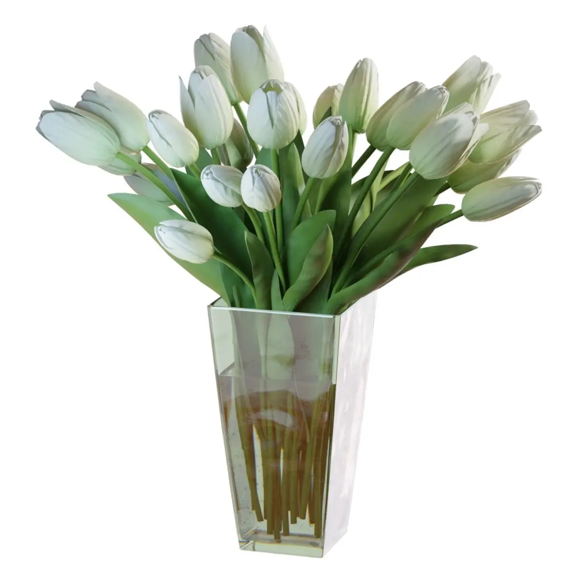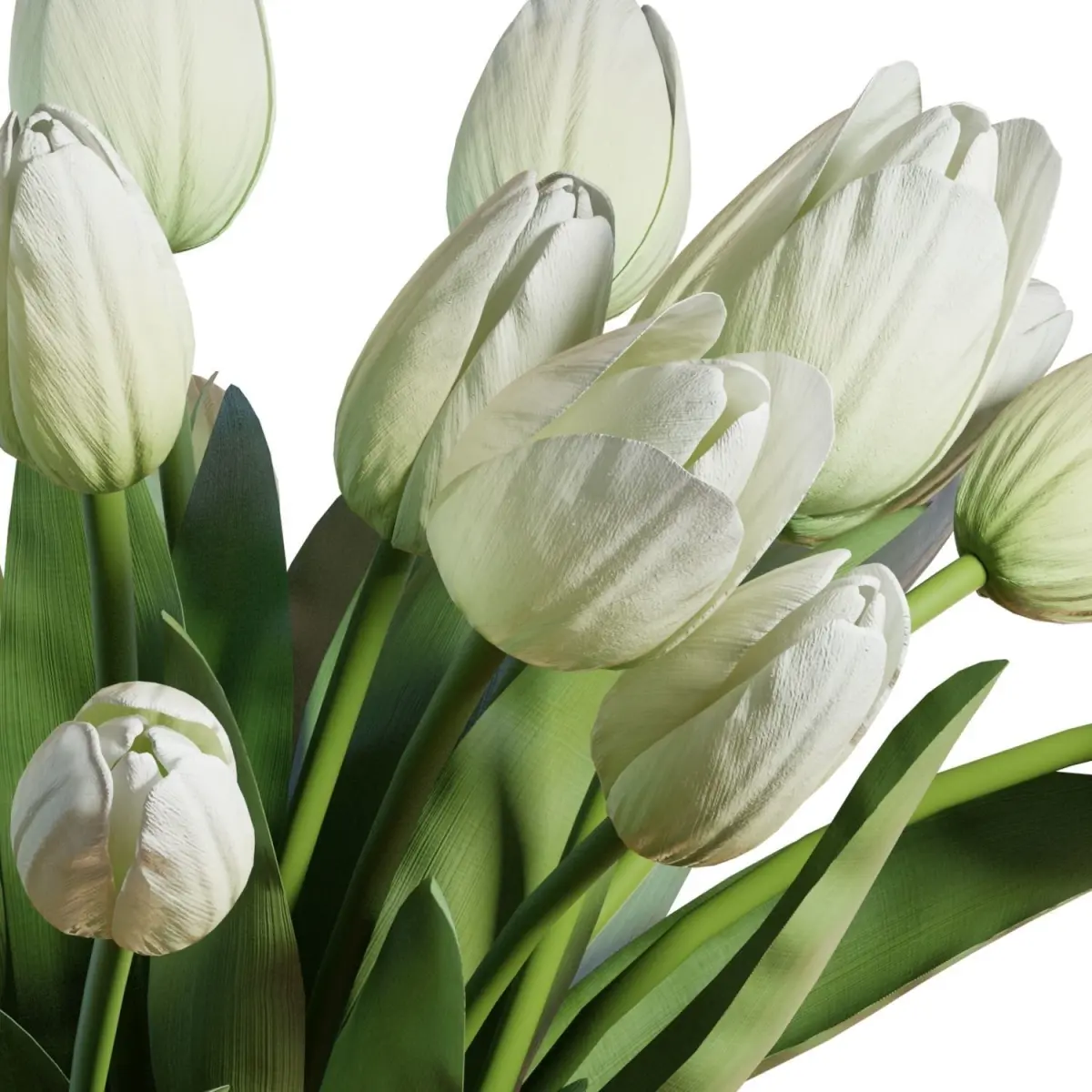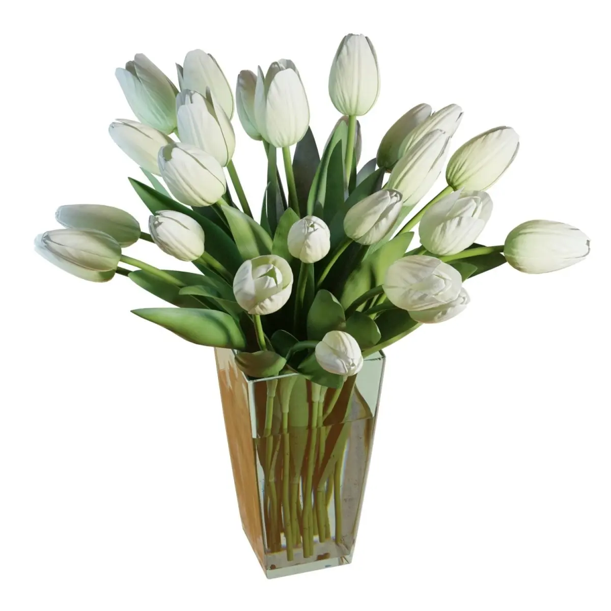 High-quality 3d model of a White Tulips Bouquet in a glass vase. 25 flowers.The model is fully subdividable.