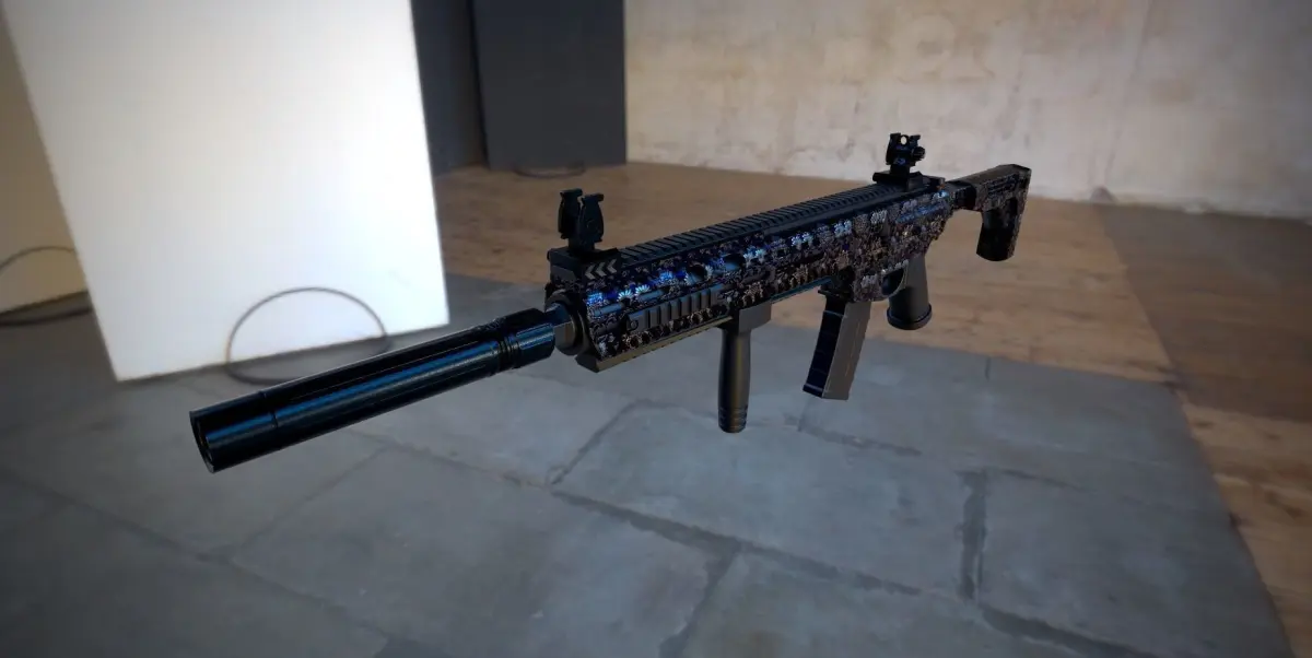 This is an original concept I created and not any real-world product. Therefore this can be used in games without having to worry about licenses for gun manufacturers.