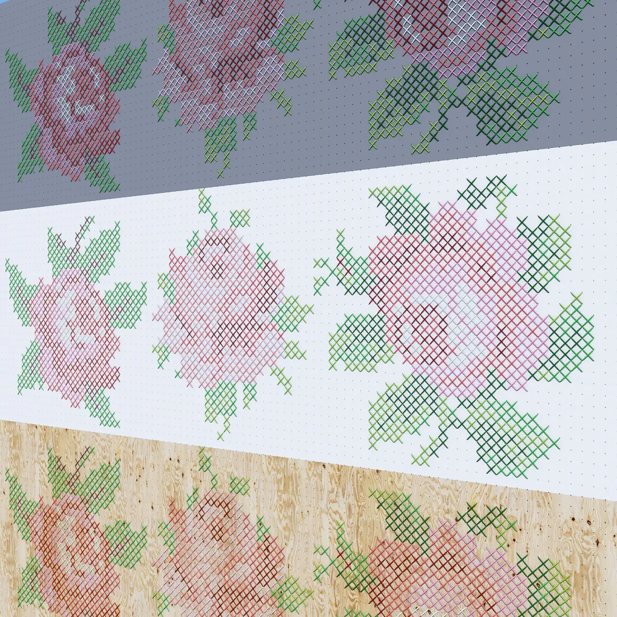 HomeCatalogFlowers cross stitch pattern of roses 3D model