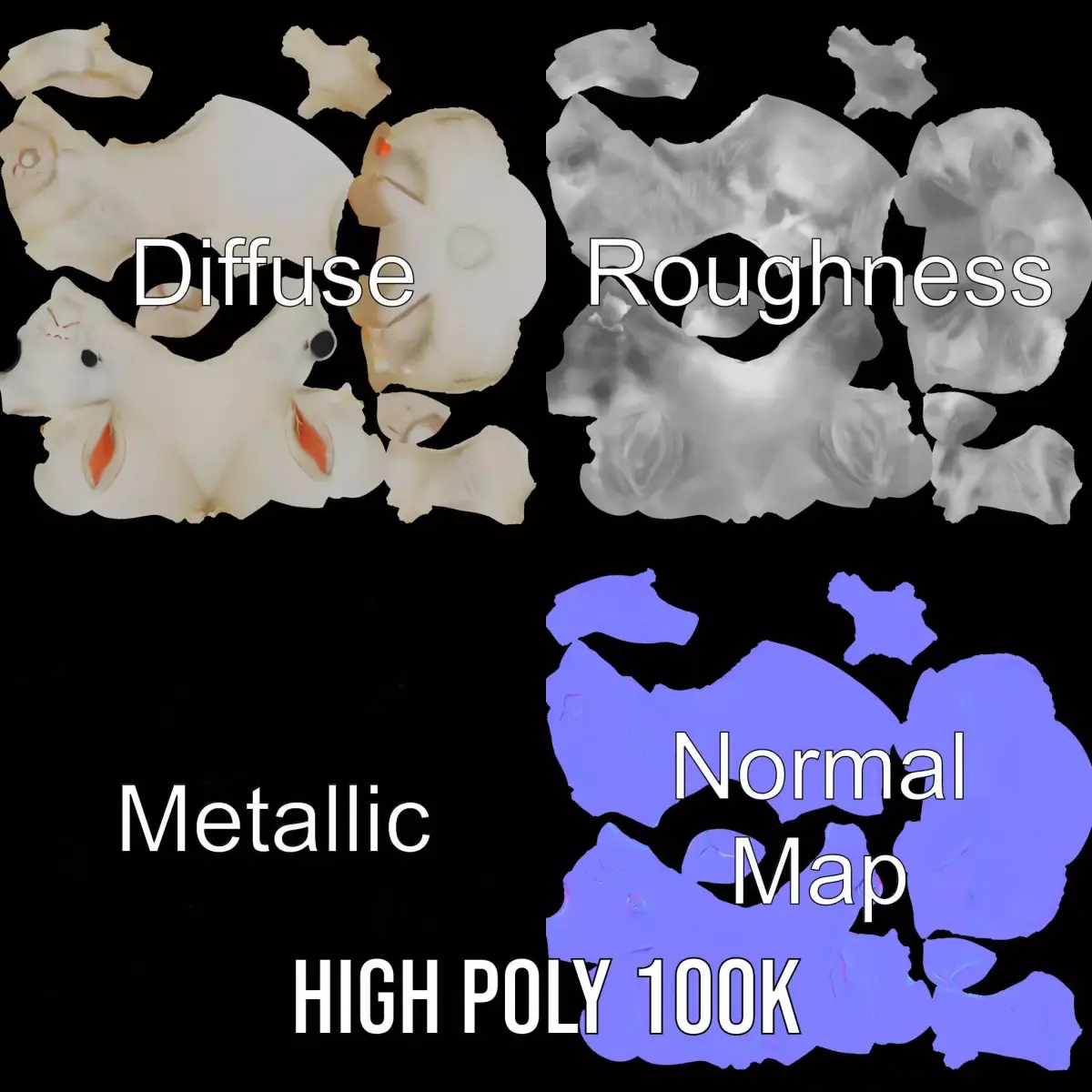 This 3D model of a fluffy white rabbit captures the adorable and lifelike features of a sitting rabbit, perfect for adding a touch of realism to any project. Each model comes with three levels of detail: low-poly (1000 triangles for mobile), middle-poly (10,000 triangles for environment), and high-poly (100,000 triangles), allowing the model to be utilized across production rendering platforms such as 3ds Max, Maya, Cinema4D, Blender, Vray/Corona/Cycles, as well as in game engines like Unity and Unreal Engine, and interactive presentations. This versatility ensures optimal performance and visual fidelity based on the LOD System principle. Ideal uses include animations, games, educational content, and marketing materials. The model's textures are PBR, including Diffuse, Normal Map, and reflection/roughness/metallic maps, compatible with any modern rendering engine. All models are accurately unwrapped with no overlapping UVs, ensuring high-quality texturing. Textures are 4096x4096 in size to provide fine detail. If you enjoy this model, please like and leave a comment.