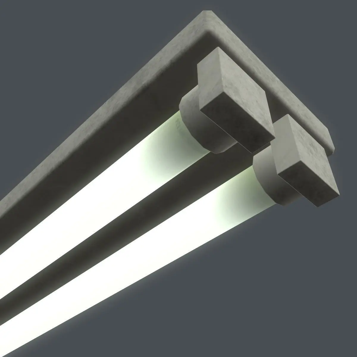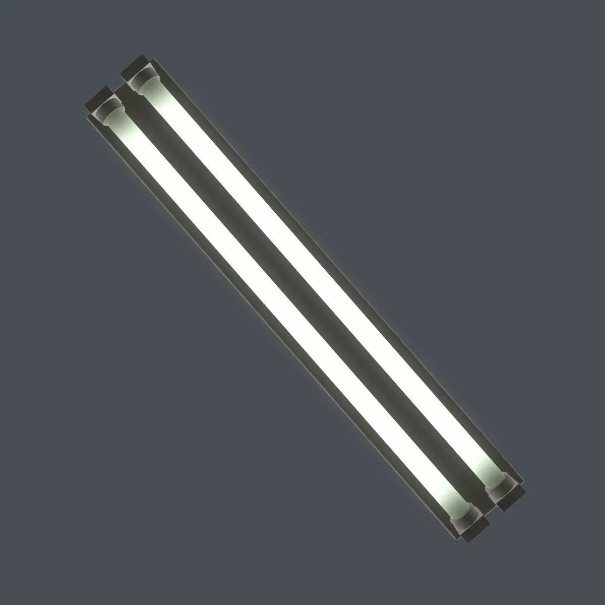Fluorescent lamp. This can be mounted on ceiling or wall. Fully textured with 1024x1024 textures. Diffuse and luminosity (emissive) maps are included.