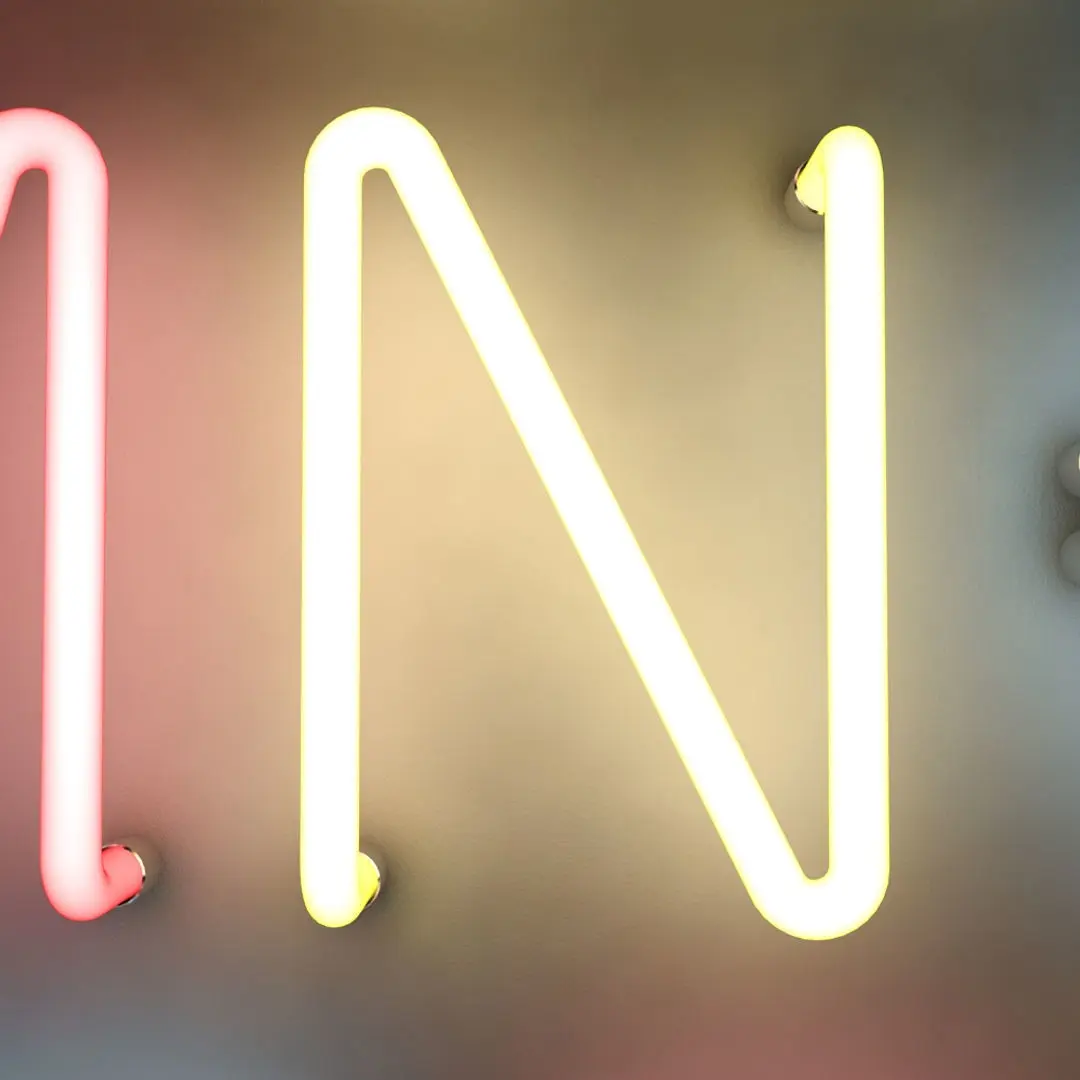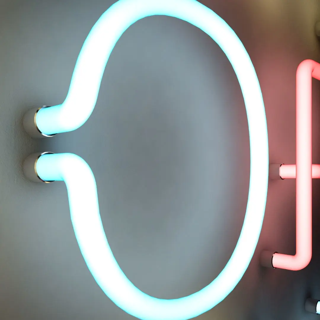 A highly detailed 3D model of neon tube strip lighting letters.