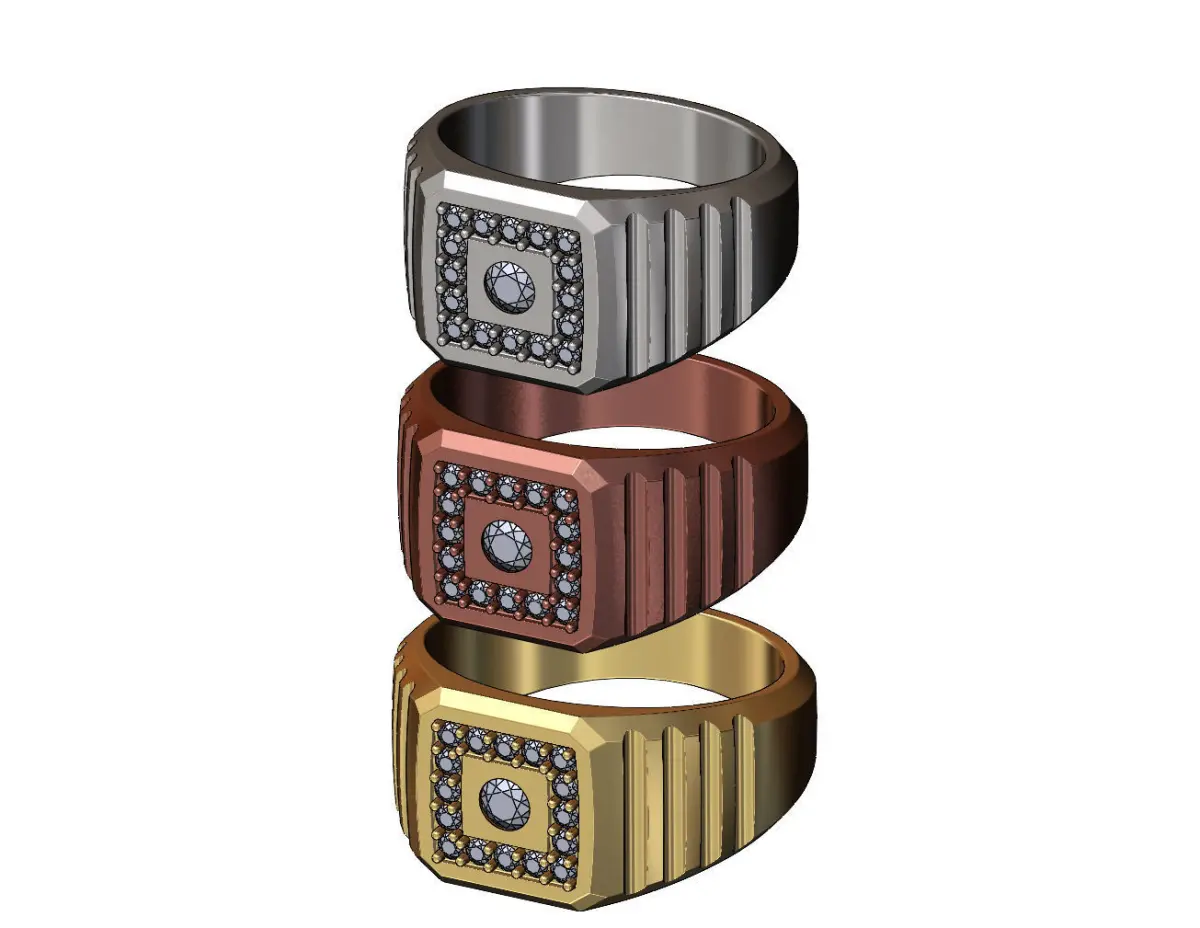 Fluted 3mm diamond square signet ring