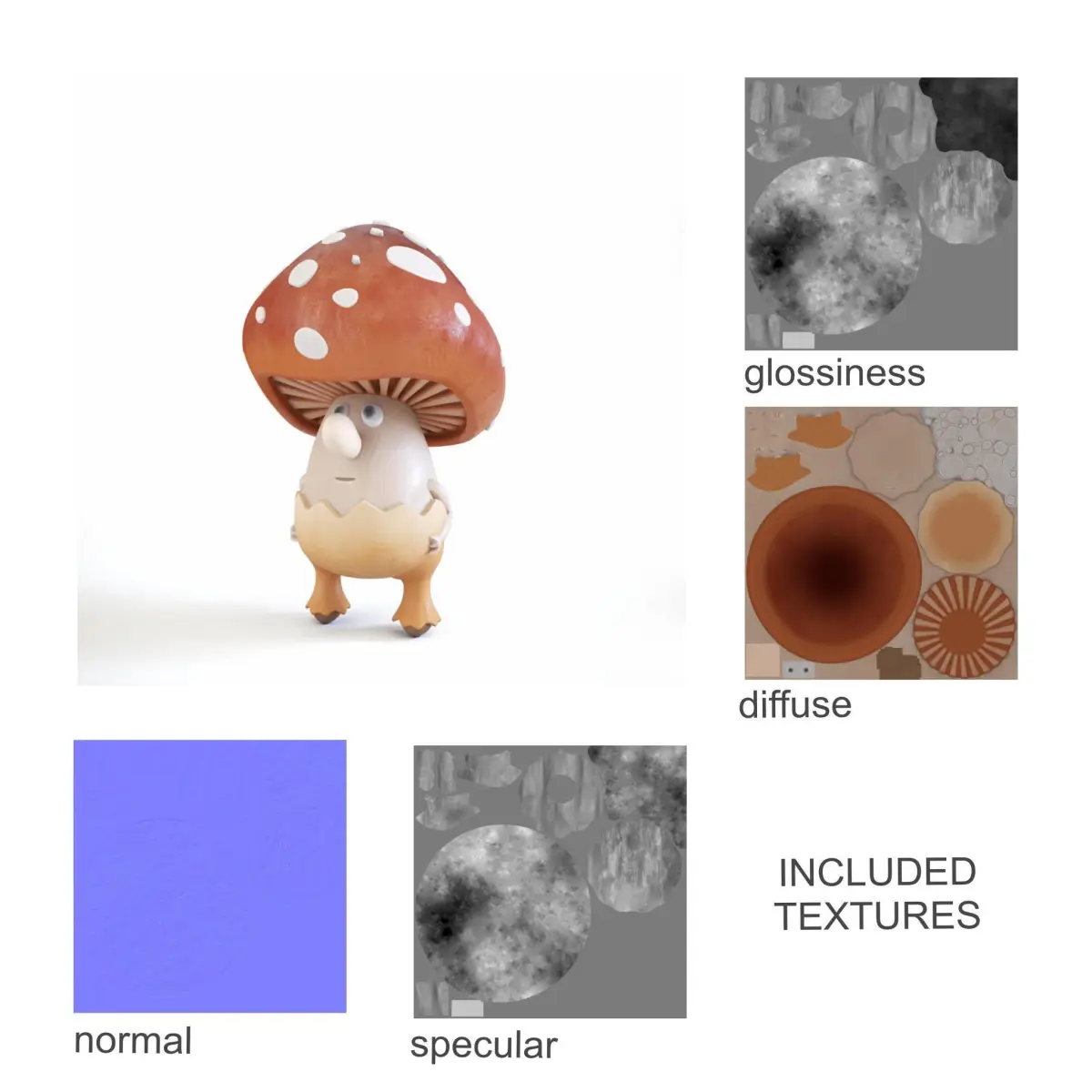 This is a 3d model of a fly agaric man with his house