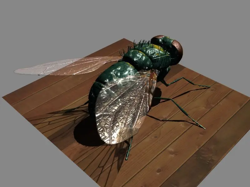 Model of a fly. Previews rendered in mental ray. Mostly textured with procedurals, wing textures included. Hair on fly is Particle Flow particles. Model is rigged and ready to animate. A set of flapping wings is set on another layer. Please note that only the .max file is rigged.