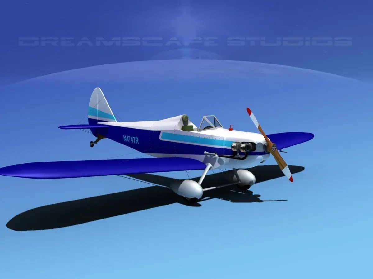 This model is built very near to scale, within a few inches of actual general dimensions. It has animateable ailerons, flaps, tabulator, rudder and propeller. The cockpit includes a fairly detailed instrument panel with some of the controls and instruments. The landing gear can be retracted or extended for animation. This model is fully textured and is available in 12 formats and 20 different paint schemes.