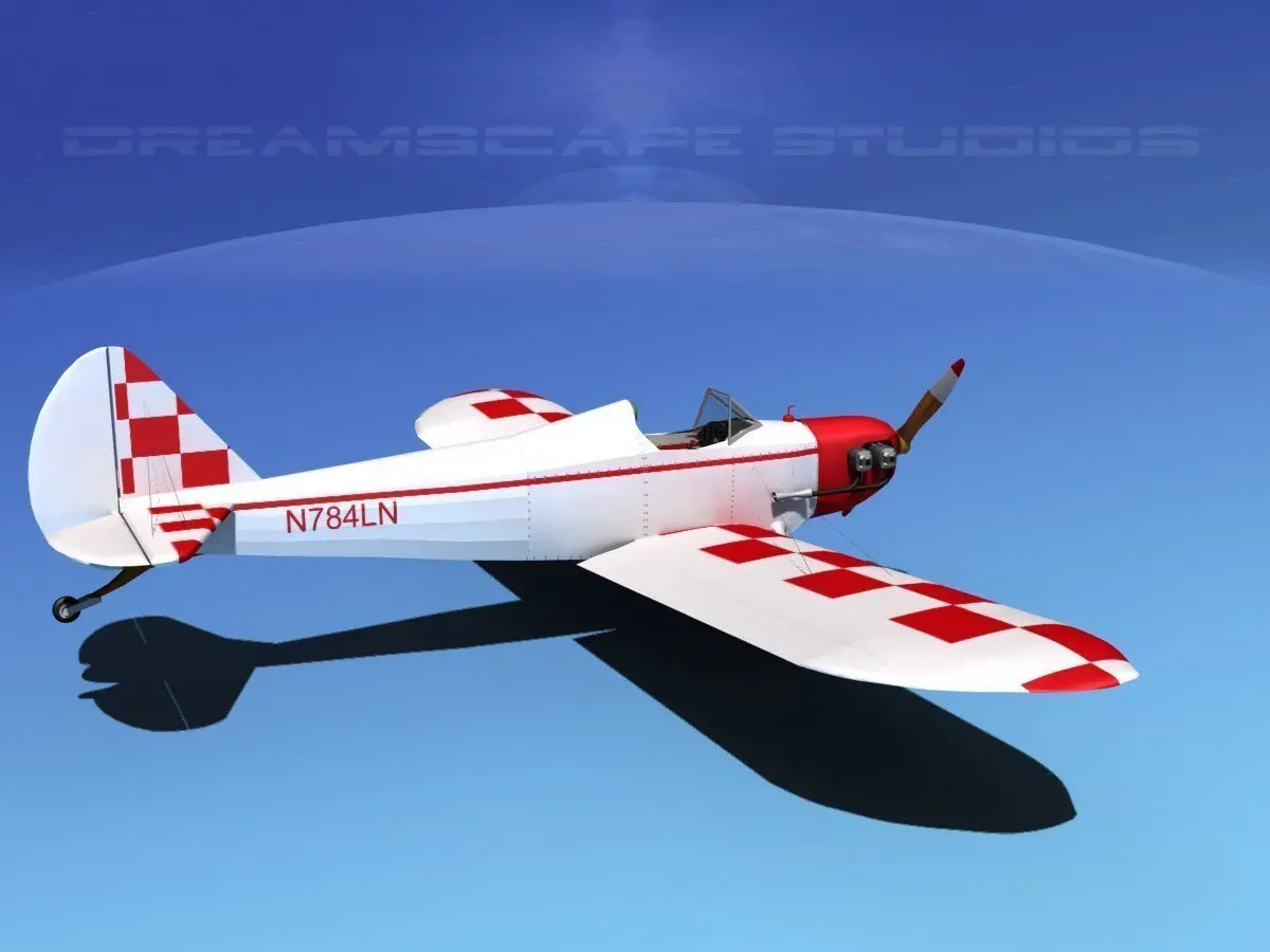 This model is built very near to scale, within a few inches of actual general dimensions. It has animateable ailerons, flaps, tabulator, rudder and propeller. The cockpit includes a fairly detailed instrument panel with some of the controls and instruments. The landing gear can be retracted or extended for animation. This model is fully textured and is available in 12 formats and 20 different paint schemes.