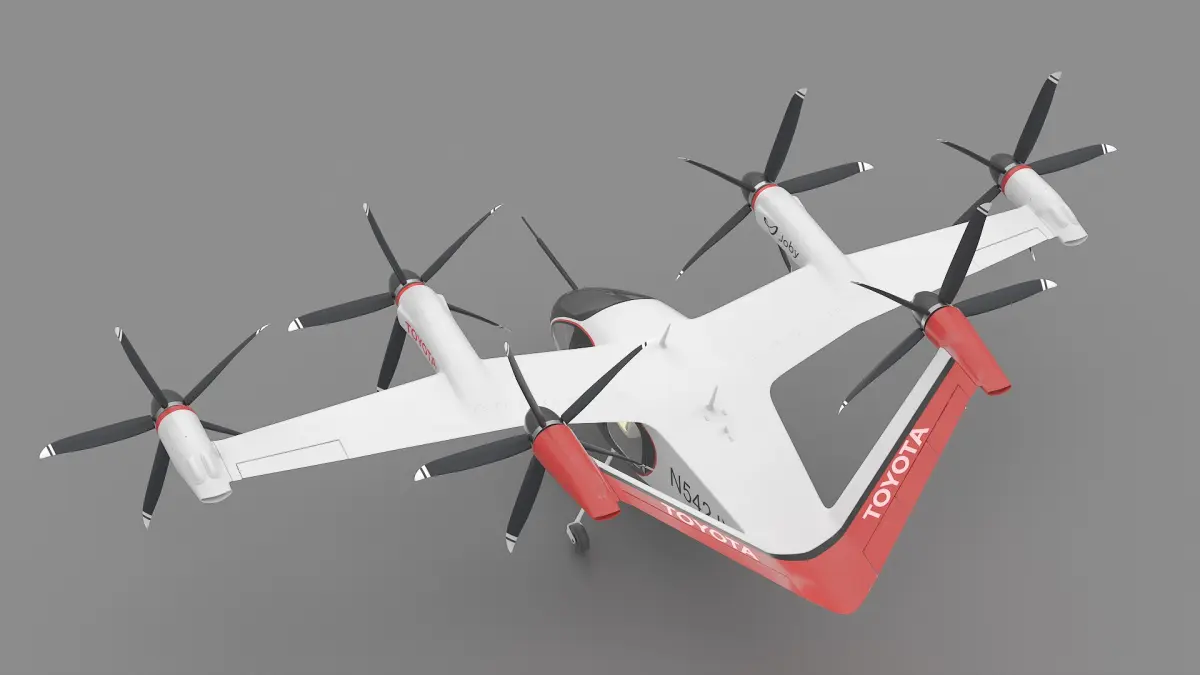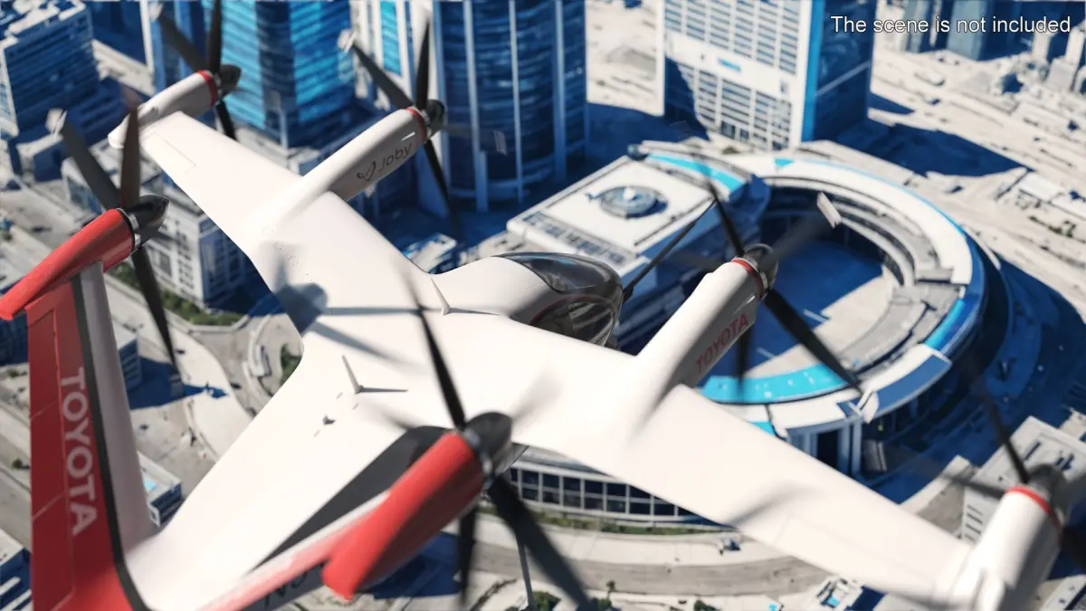 Flying Air Taxi Toyota eVTOL is a three-dimensional model of innovative electric vertical takeoff and landing (eVTOL) taxi vehicle, designed for urban air mobility.