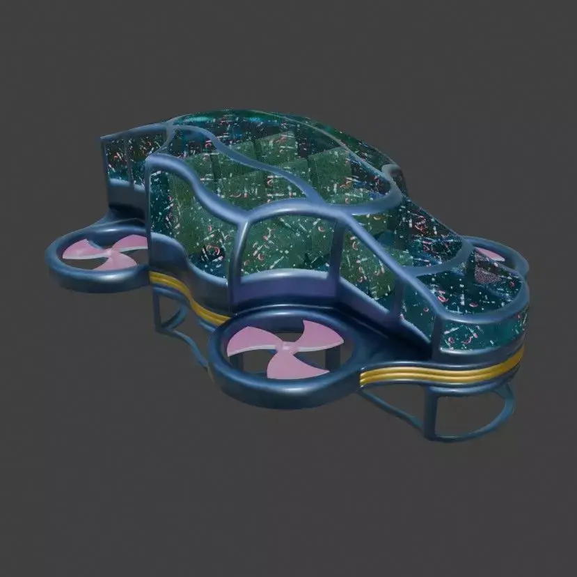 This is a prototype of a flying car, similar to a drone, but for transporting passengers and luggage.