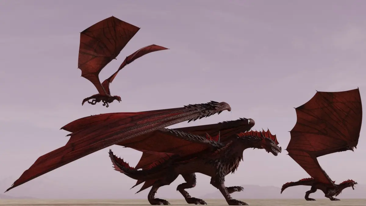 Animations include jump, fly in place, fly forward, land, roar, and walk forward.