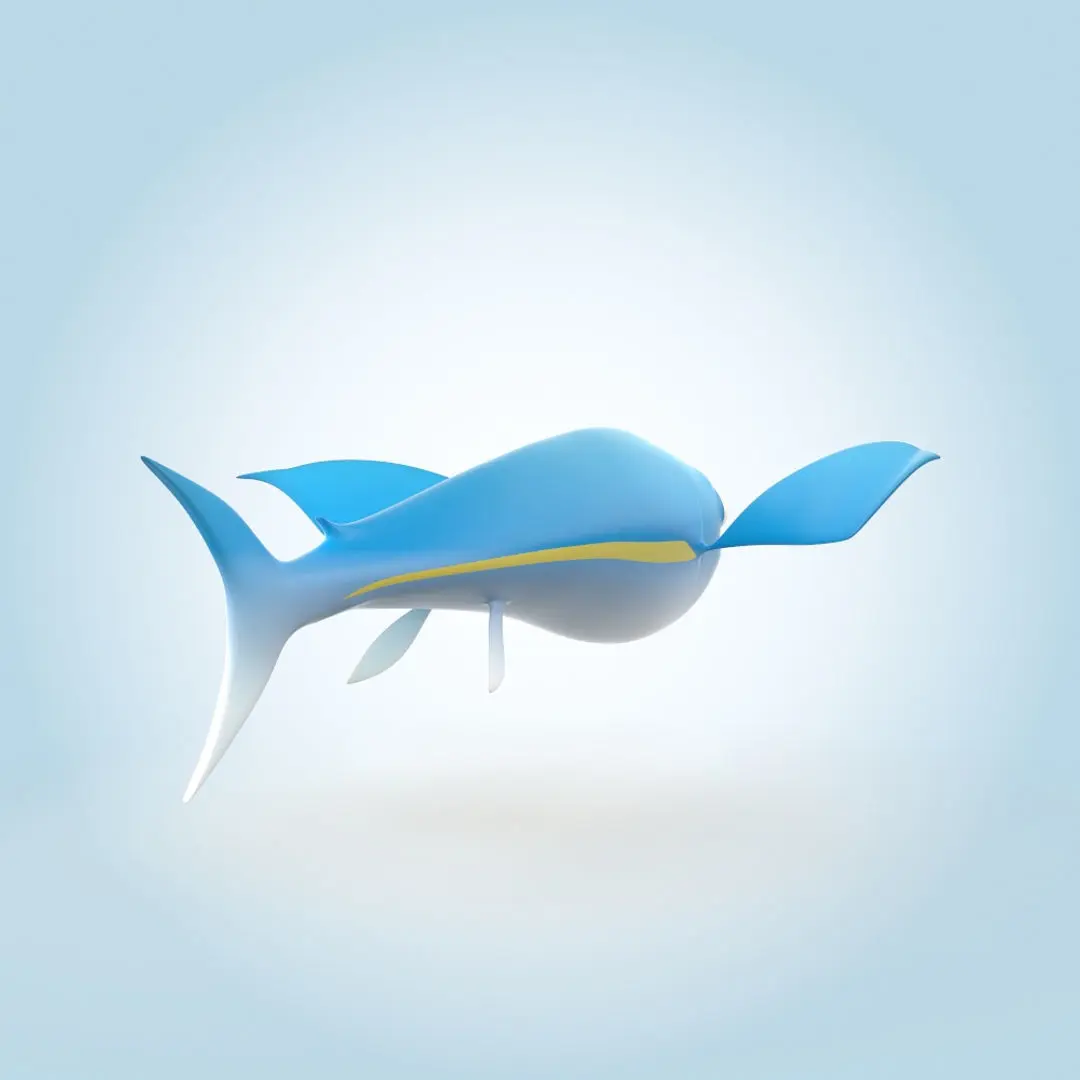 Flying fish Cartoon 3D Model.