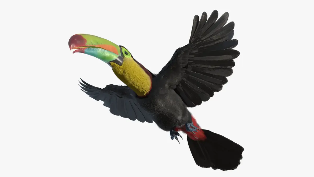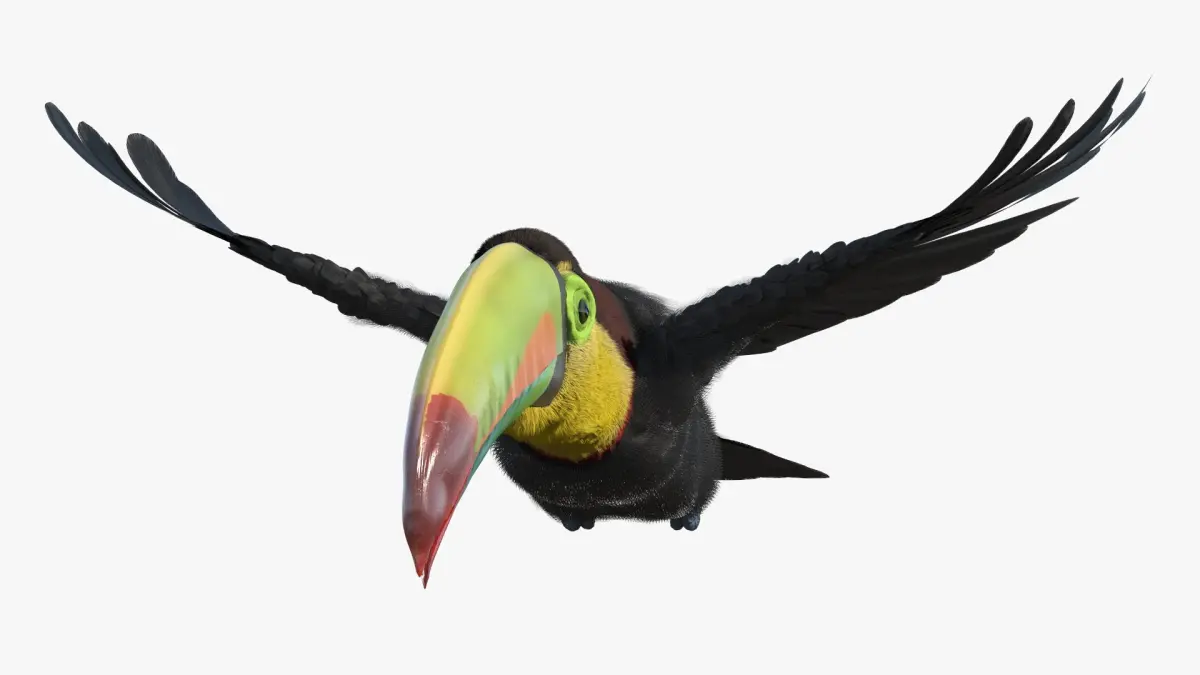 Flying Keel Billed Toucan Fur for Cinema 4D is a three-dimensional model of Toco Toucan bird that is a Ramphastos toco (largest and most recognizable member of the toucan family).