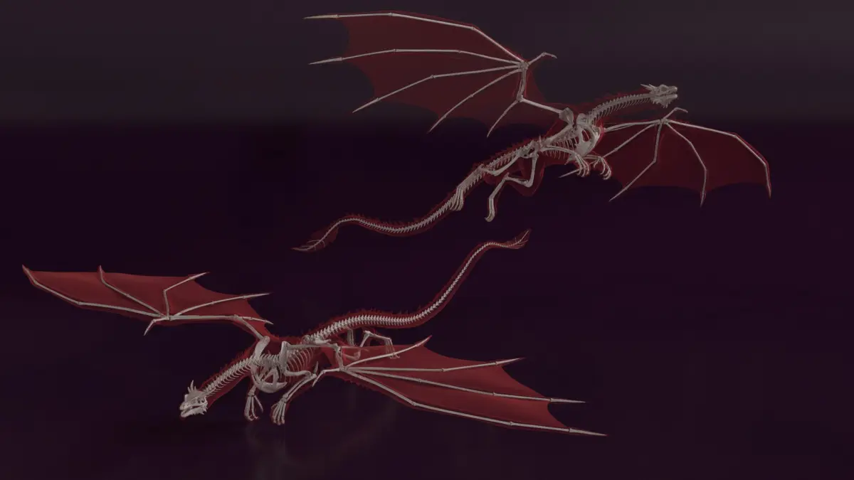 A fantasy-style dragon skeleton, preserved as fossilized remains, is an iconic element of mythology. Comprising bones and cartilage, these remnants symbolize the lost history of dragons. Though fictional, they frequently appear in literature, museums, and fantasy art, capturing the imagination of those who love legendary creatures.