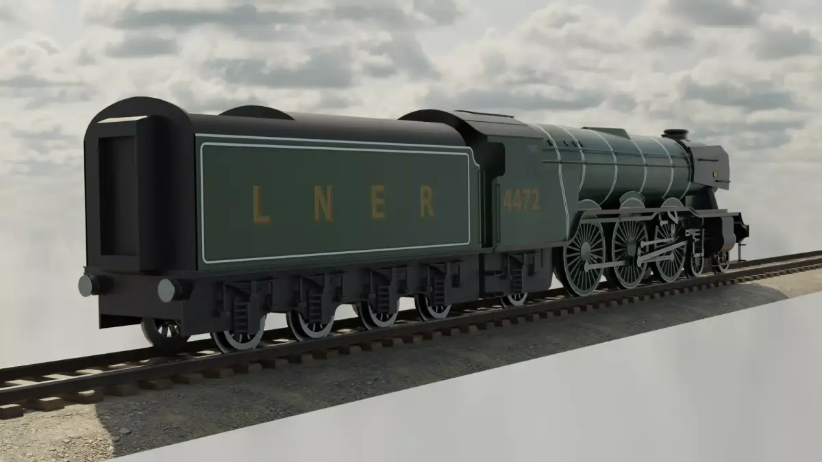 Model: Flying Scotsman Steam TrainMedia Type: 3D Model Geometry: Quads/Tris Polygon Count: 90153Vertice Count: 87631Textures: Yes Materials: Yes Rigged: No Animated: No UV Mapped: Yes Unwrapped UV's: Yes Non Overlapping