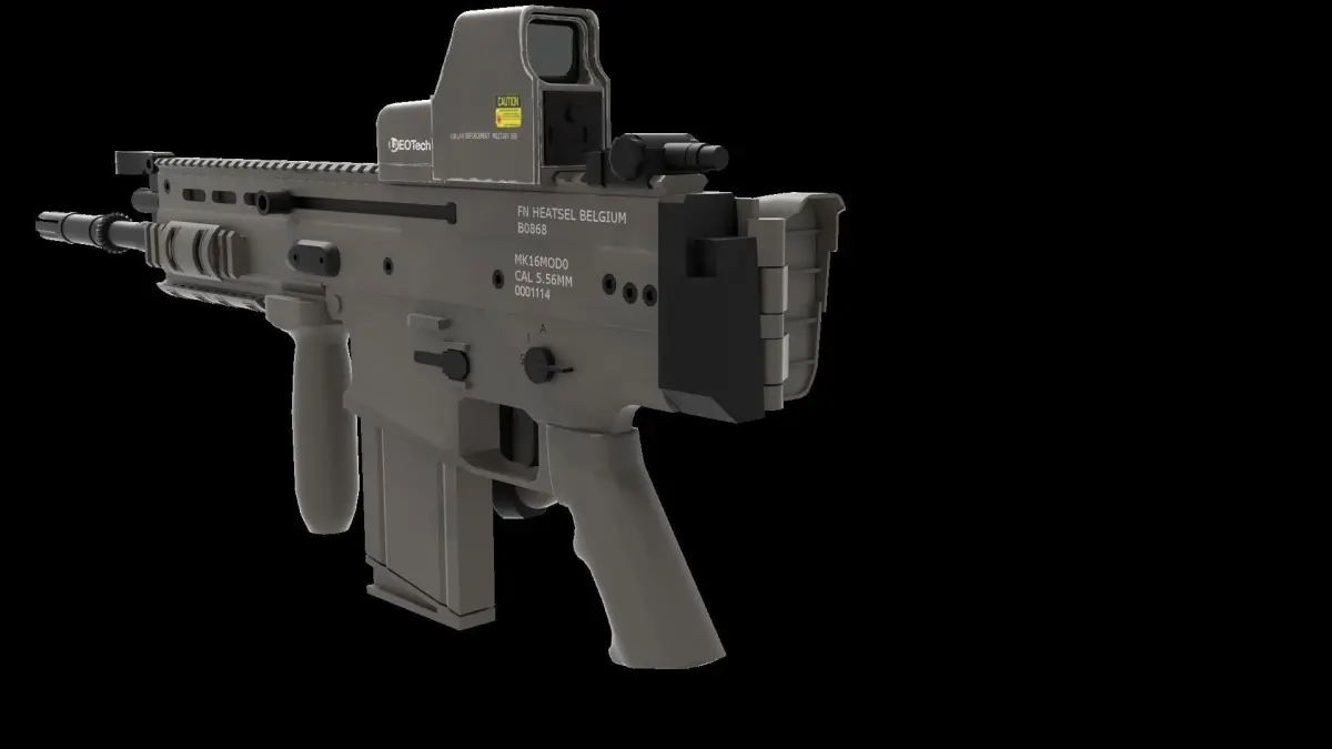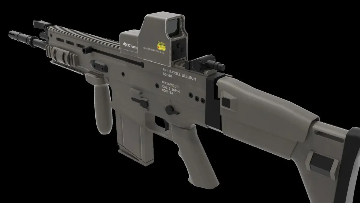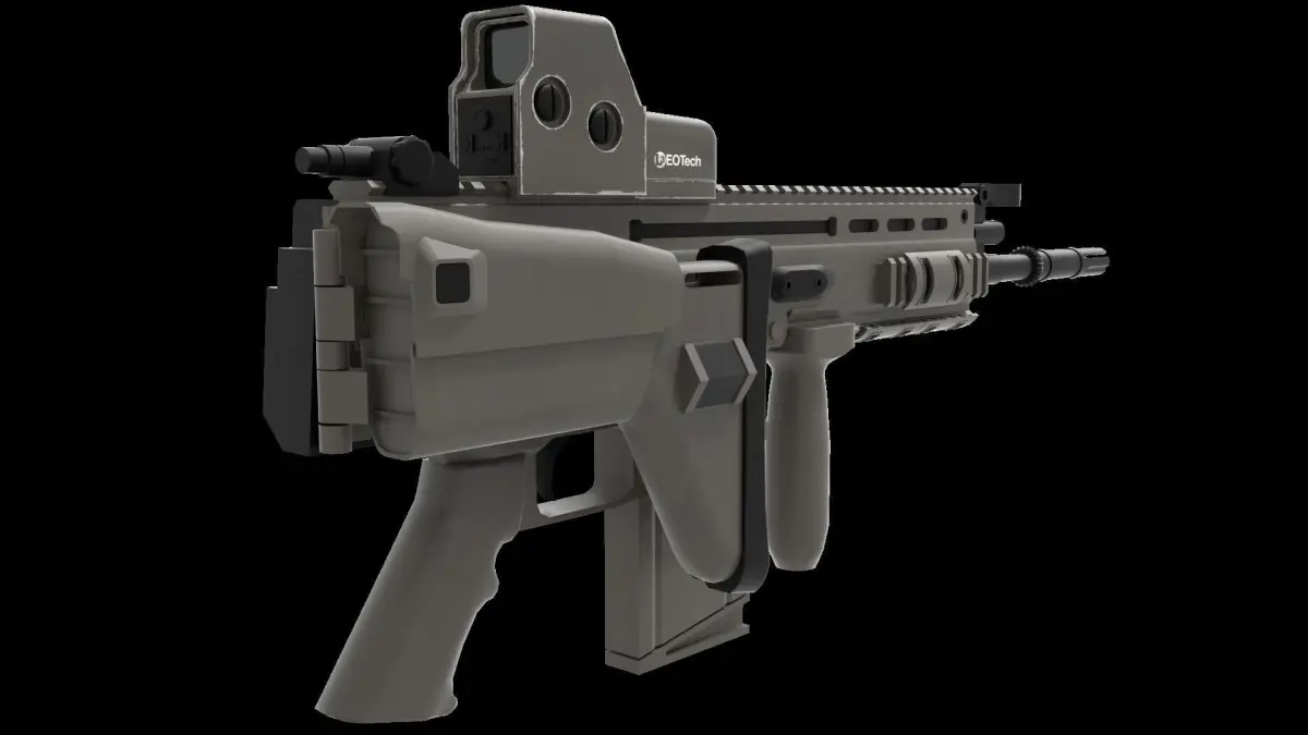 Highly detailed realistic 3d model of fn scar assault rifle provided with eotech sight
