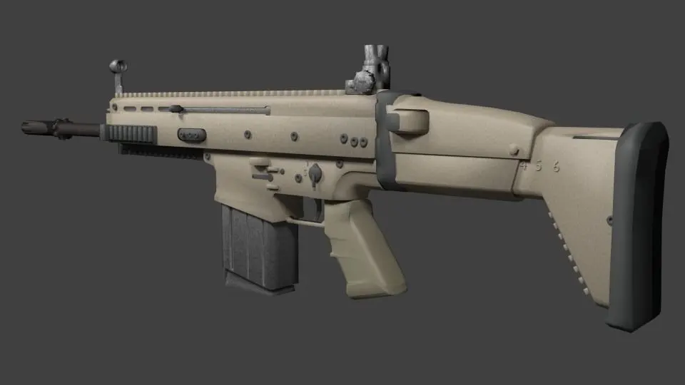 game ready FN-scar modeled in blender render cycles 256 samplesrigged and ready for animatingavailable in 6 file formatobj-fbx-blend-dae-ply-3dsall materials are procedural made in blenderall materials are baked into 2k PBR maps-basecolor-metalness-bump-normal-rougness-AO-mapready to use in unity and other game engineshigh model details with only 7233 verticesyou can get offer price up to 30% automaticallyhope you like it