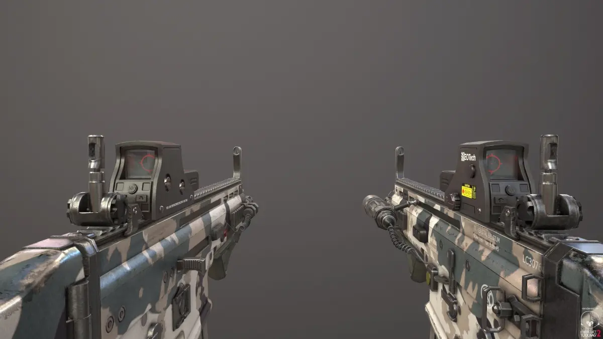 10 sets of 4k textures for extra quality for every part of the model. 5 types of gun body color/camouflage.