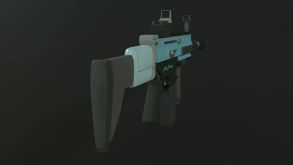 A medium-poly model of a FN SCAR rifle with PBR textures, embeded in the blend file. No textures or normal maps.