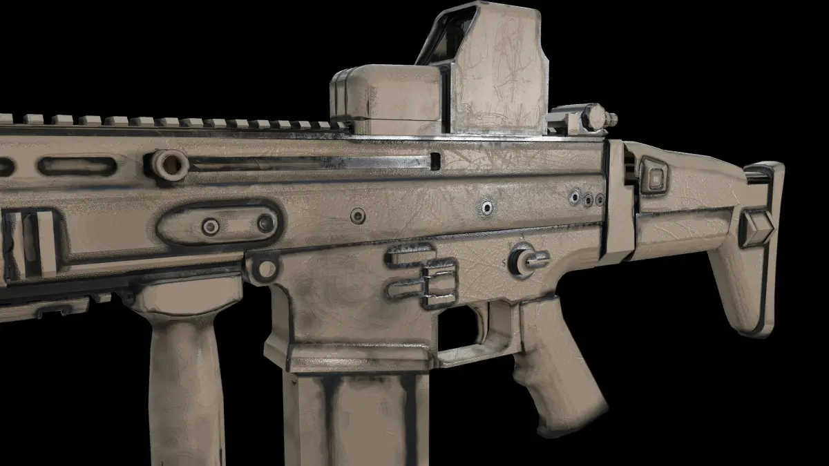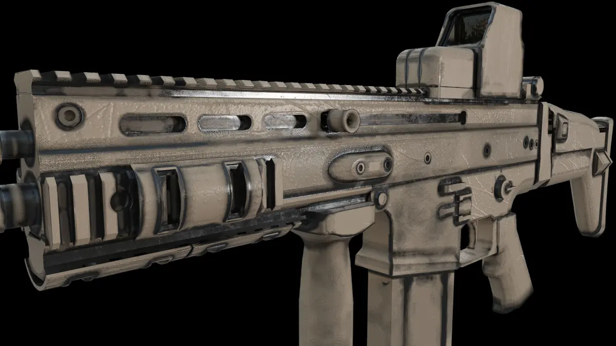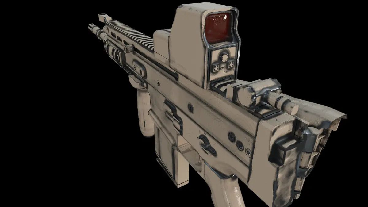 Highly detailed realistic 3d model of fn scar assault rifle provided with eotech sight.