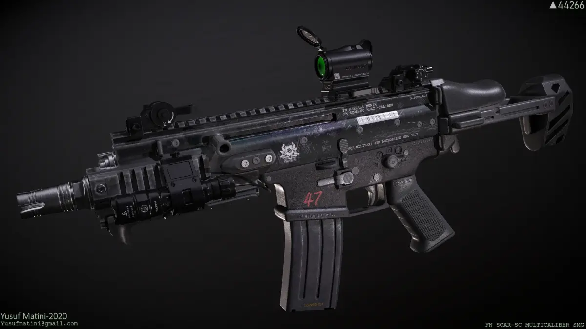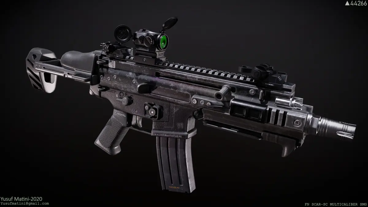 The model is game ready with 4k textures for the main gun and separated texture sets for the iron sights, the mag, the red dot and the bullets.