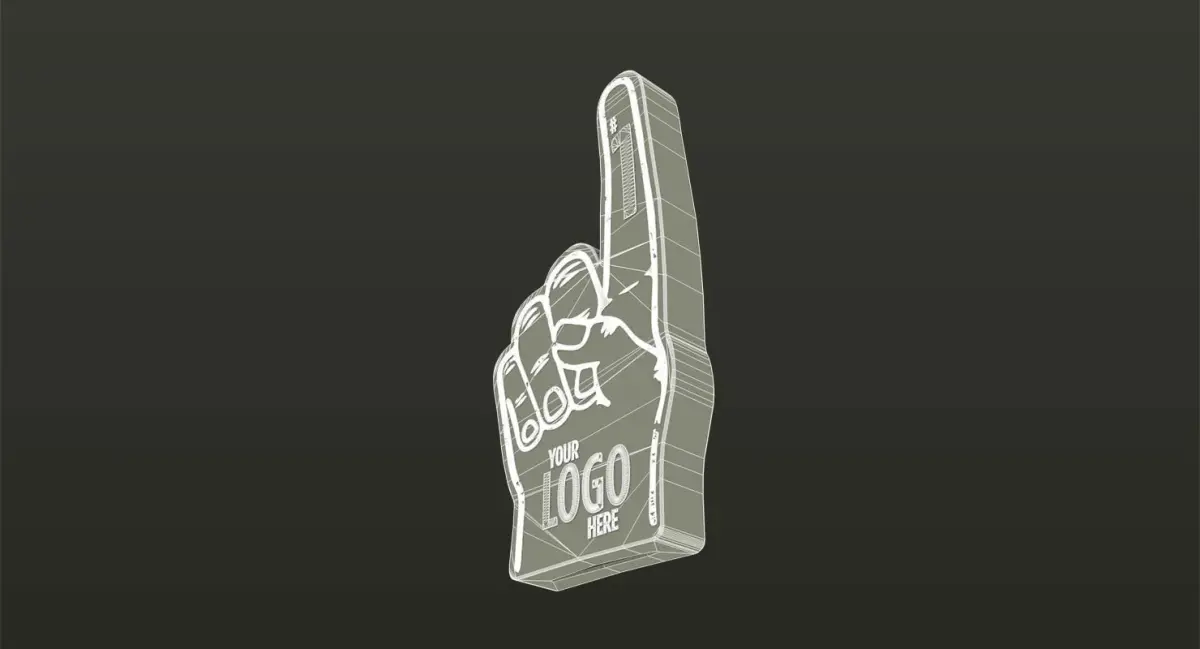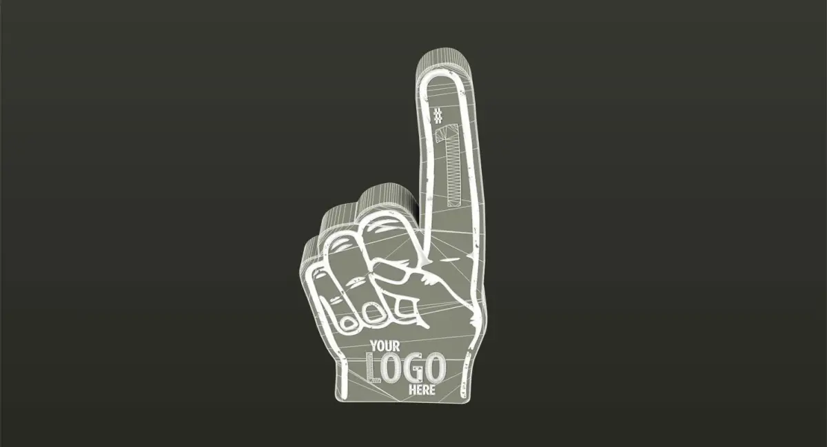 One foam finger with '#1' text and ability to add personalized logo to palm of the foam hand. Includes red and white material as well as text file explaining how to easily change the color.