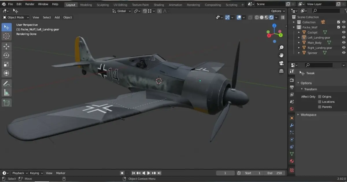 Focke-Wulf Fw 190 german world war 2 fighter. Low-poly modeled in Maya with a PBR Texture.