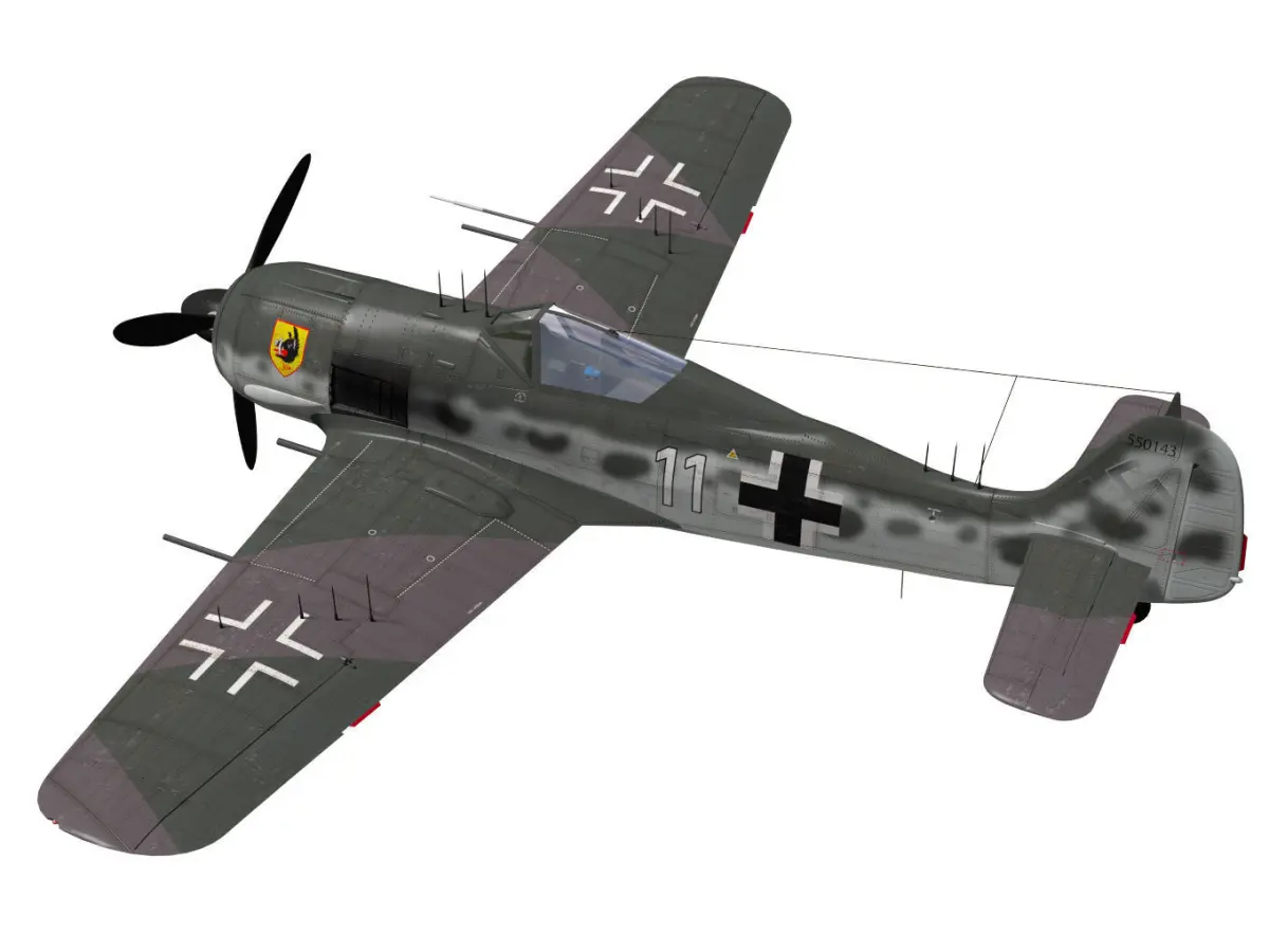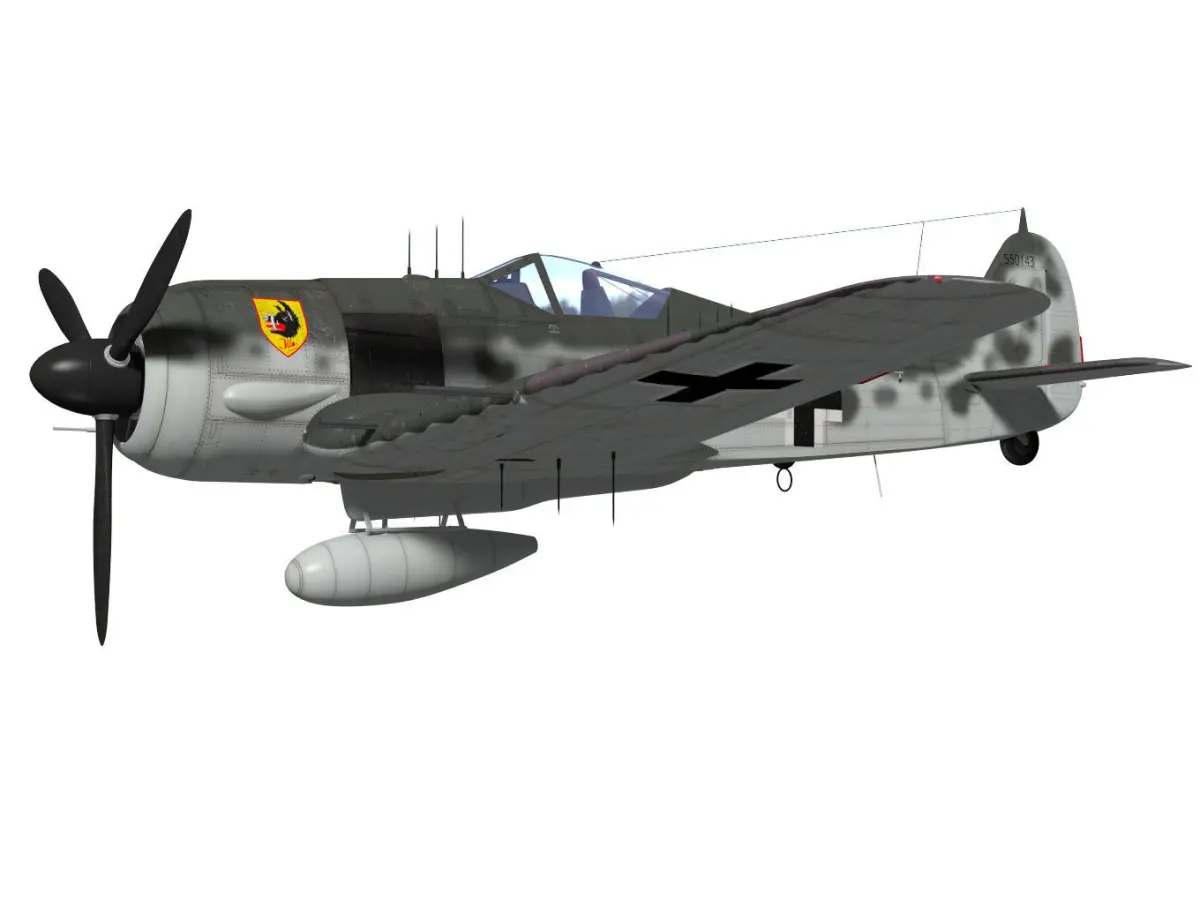 The Focke Wulf Fw190 was the Luftwaffe's main fighter in WW2.The model type is WildeSau's A-6, which was used to intercept bombers at night.The texture of the original data may have changed due to export.Other parts of operating parts are separated. However, please be aware that the rig is not reflected.This model is not intended for use in games or other low-polygon applications.This model is not intended for 3D printing.Please be careful when purchasing.