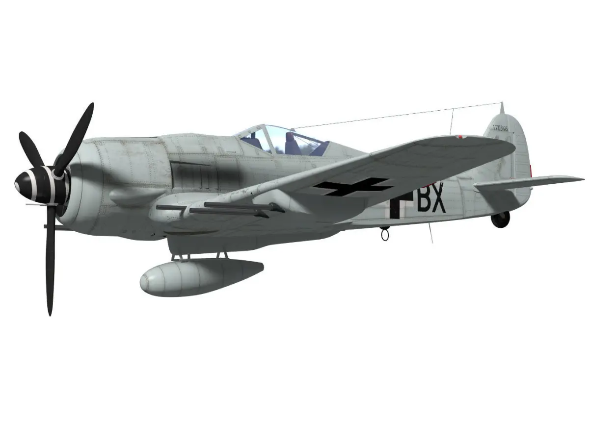The Focke Wulf Fw190 was the Luftwaffe's main fighter in WW2.The model type is A-8 R11.Type with 20mm x 2 gun pack.The texture of the original data may have changed due to export.Other parts of operating parts are separated. However, please be aware that the rig is not reflected.This model is not intended for use in games or other low-polygon applications.This model is not intended for 3D printing.Please be careful when purchasing.
