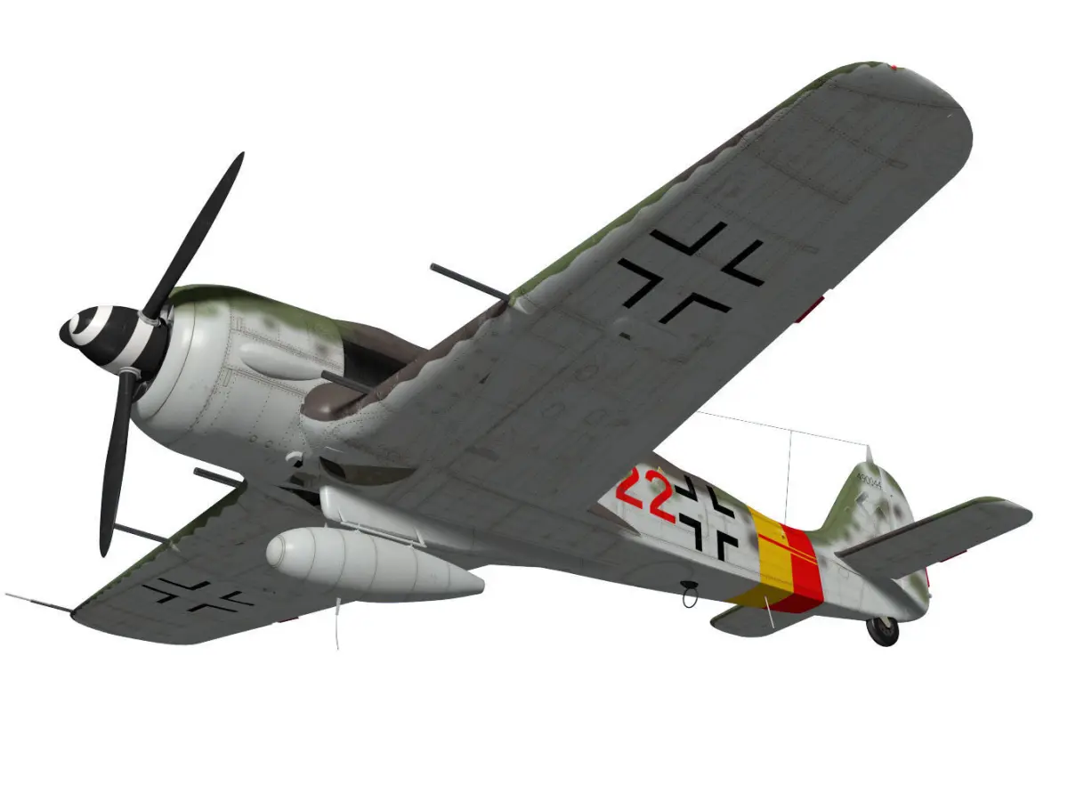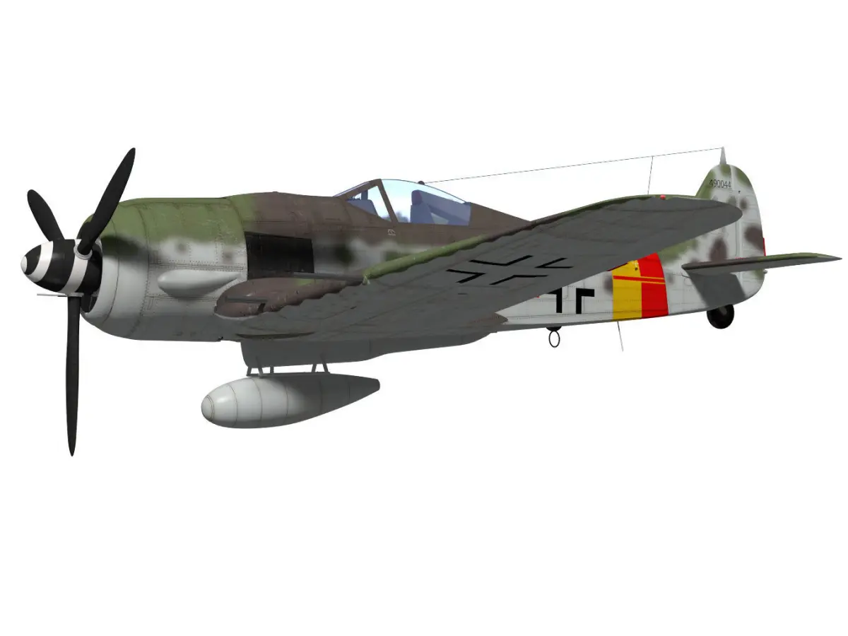 The Focke Wulf Fw190 was the Luftwaffe's main fighter in WW2.The model type is A-9.The texture of the original data may have changed due to export.Other parts of operating parts are separated. However, please be aware that the rig is not reflected.This model is not intended for use in games or other low-polygon applications.This model is not intended for 3D printing.Please be careful when purchasing.